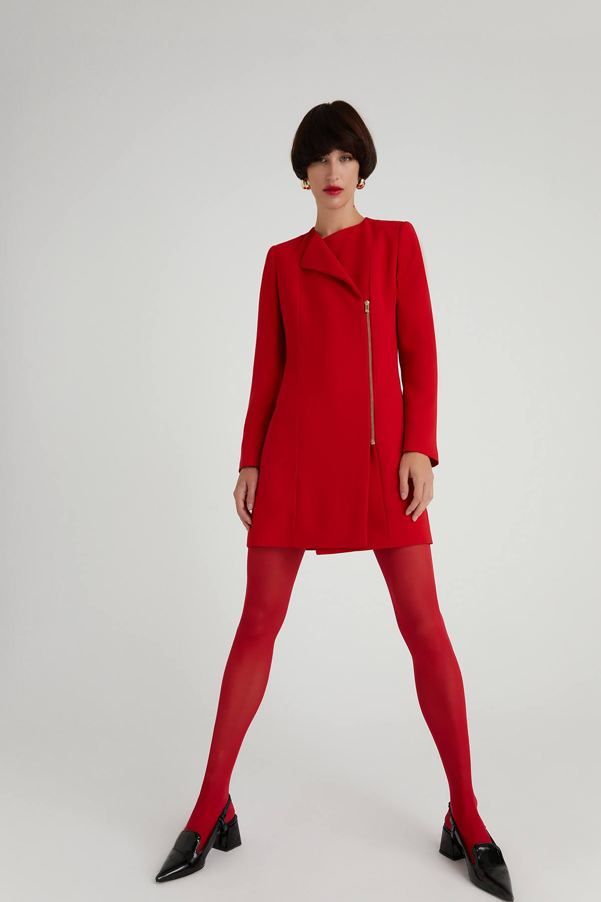 Fermuar Detaylı Kırmızı Blazer Elbise