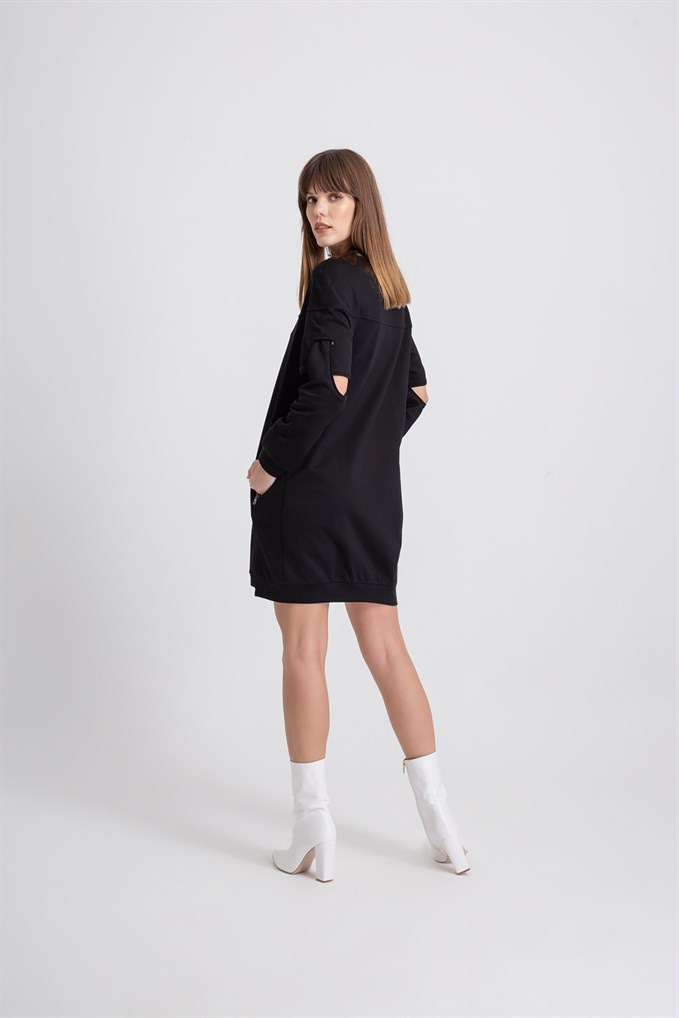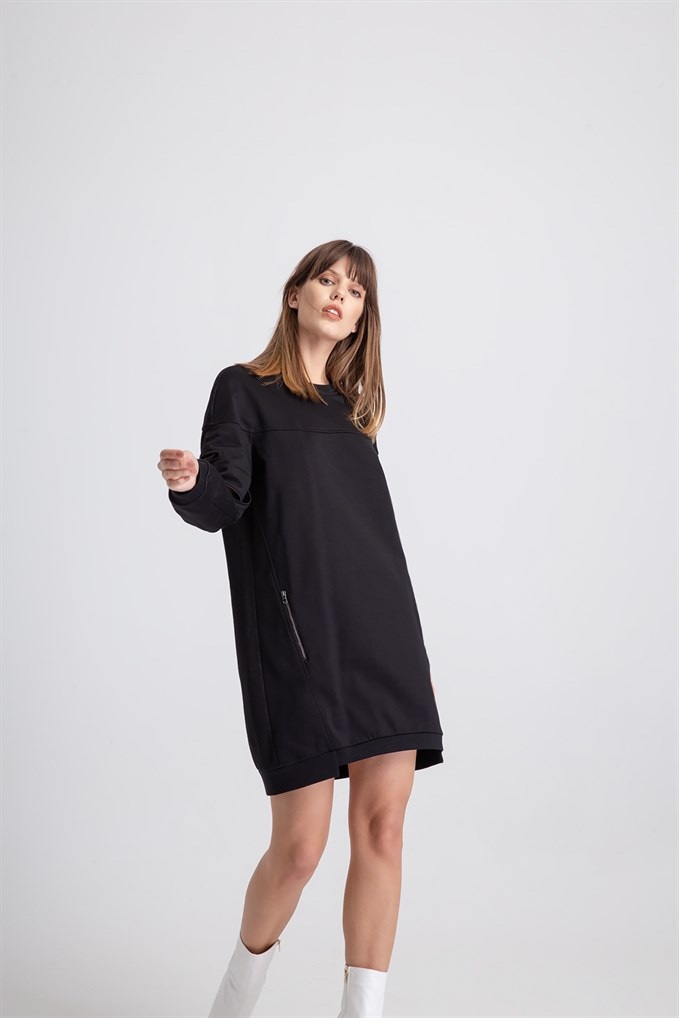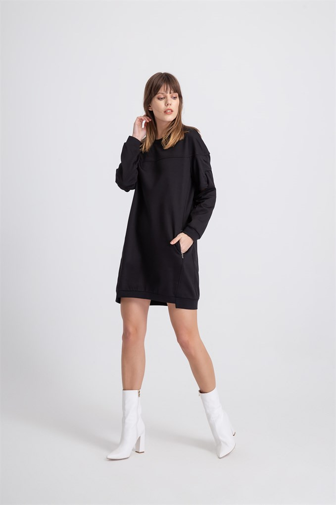 Aller Kol Sweat Elbise Siyah Renk