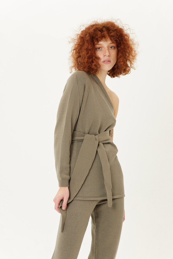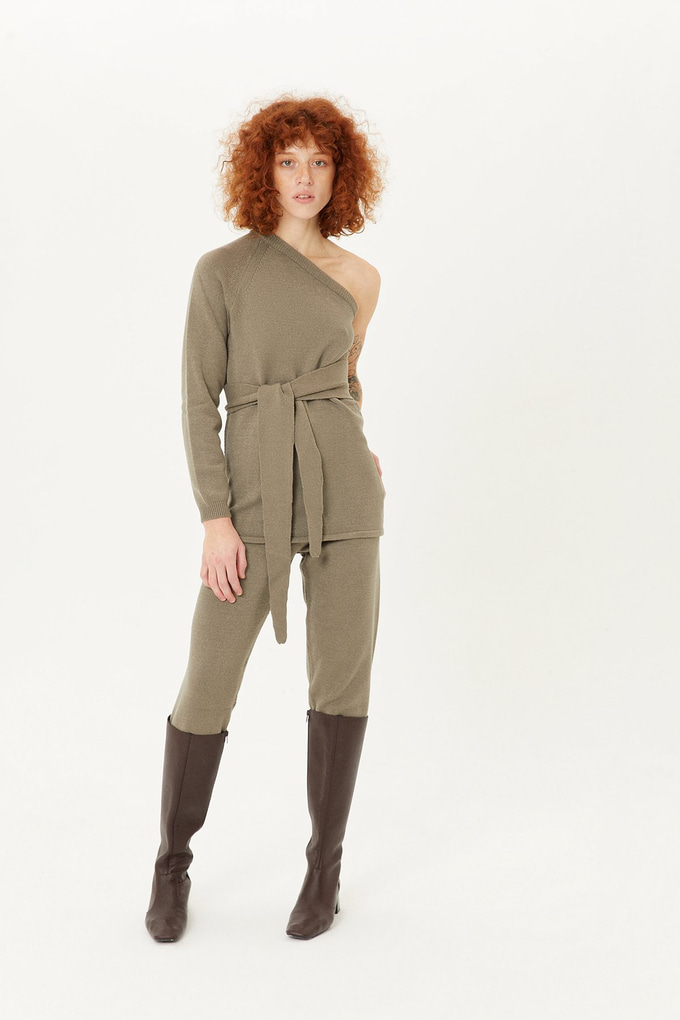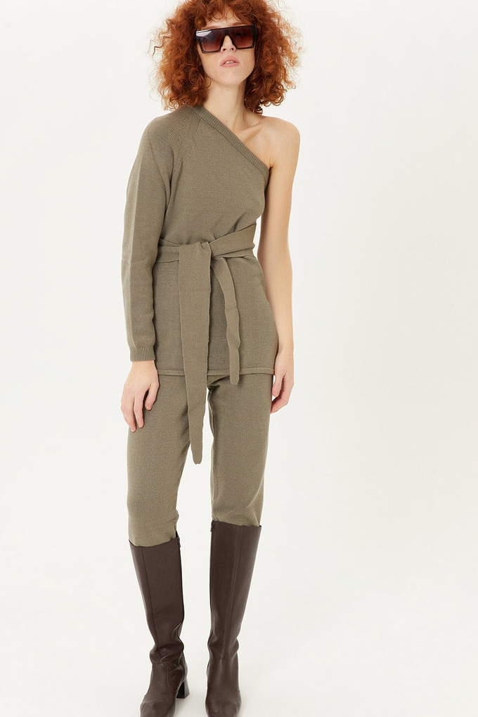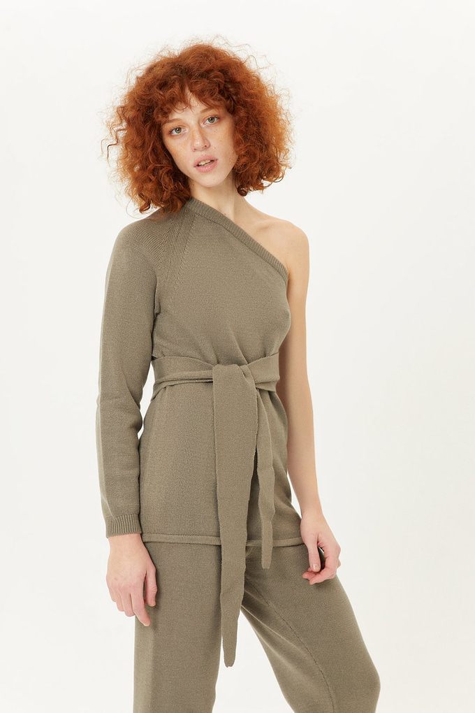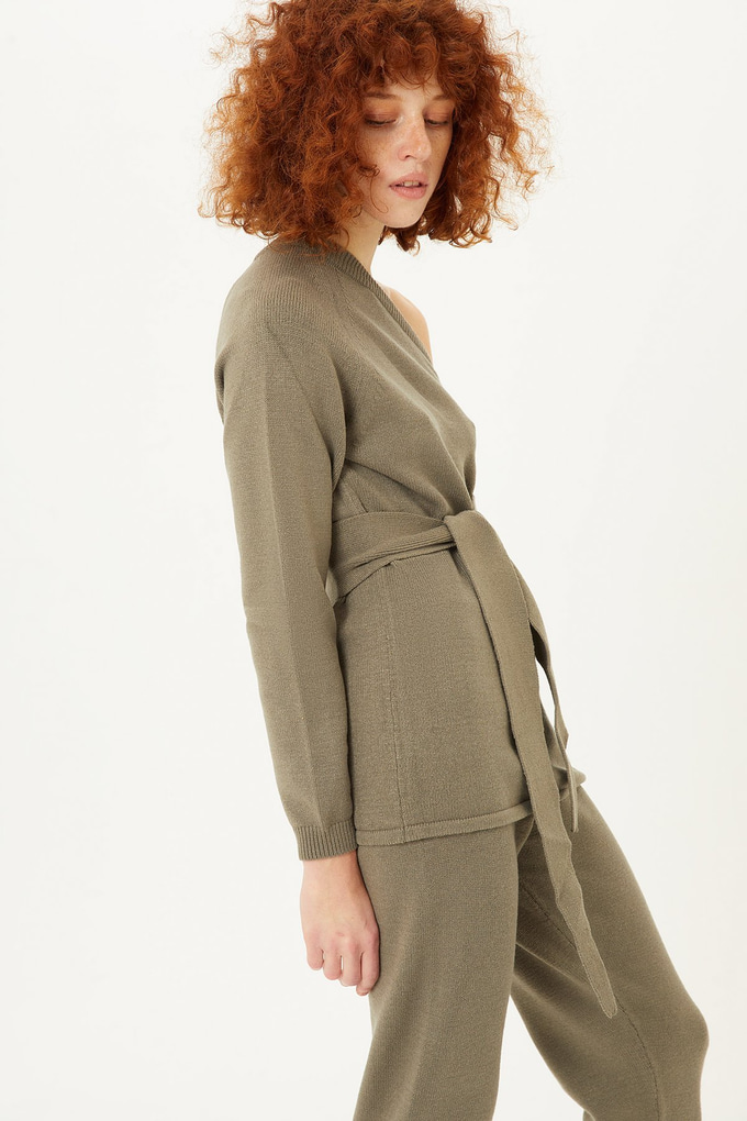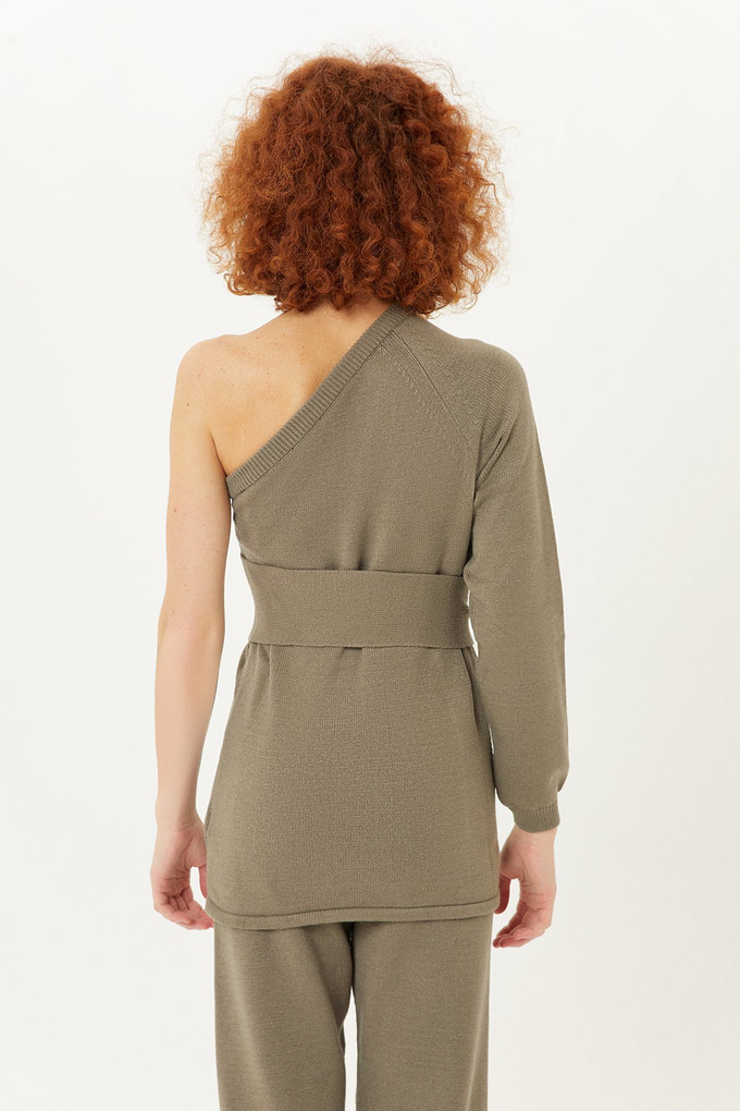 Asimetrik Kuşaklı Haki Bluz (40721015_HAKI)