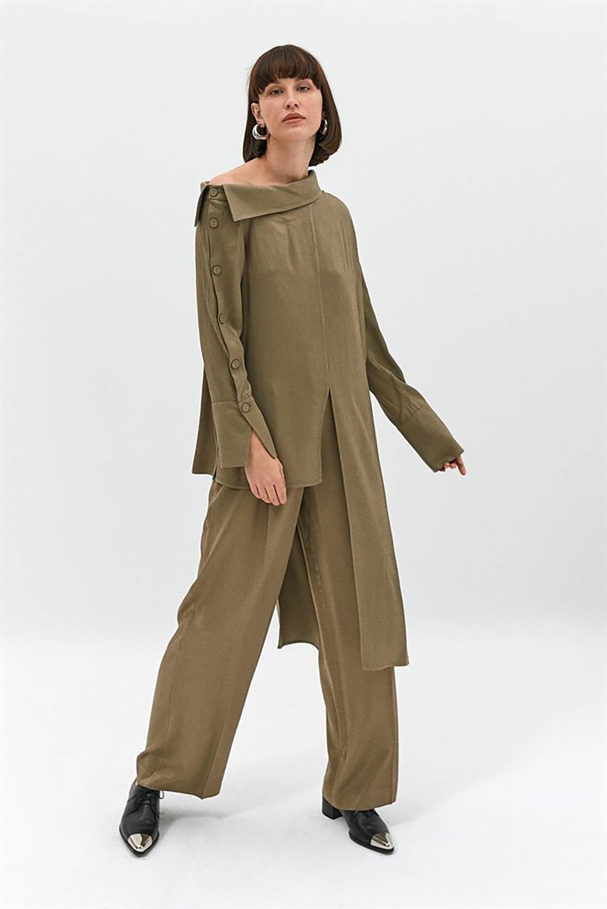 Haki Asimetrik Tunik Bluz (23290029_HAKI)