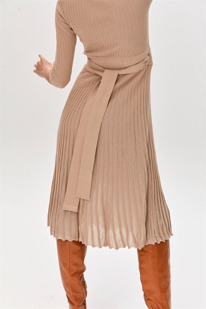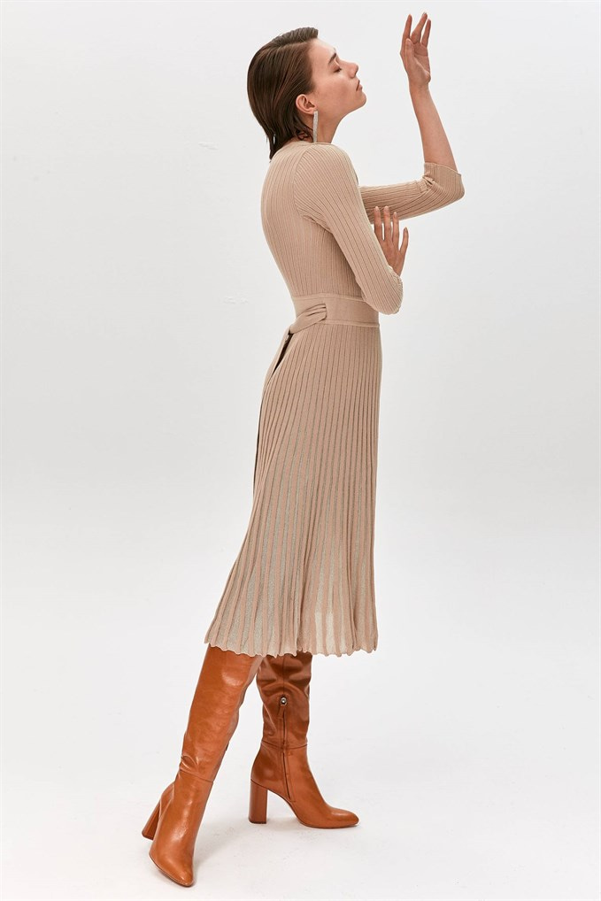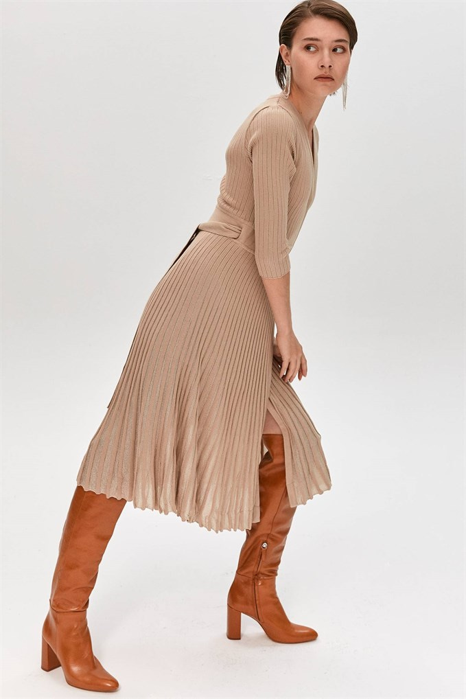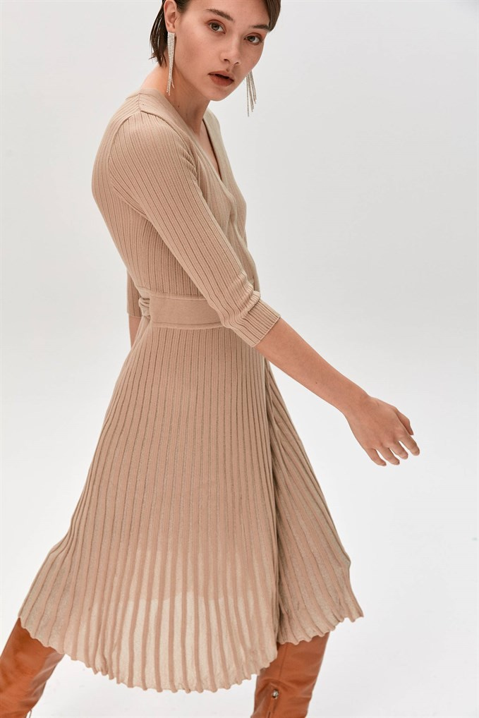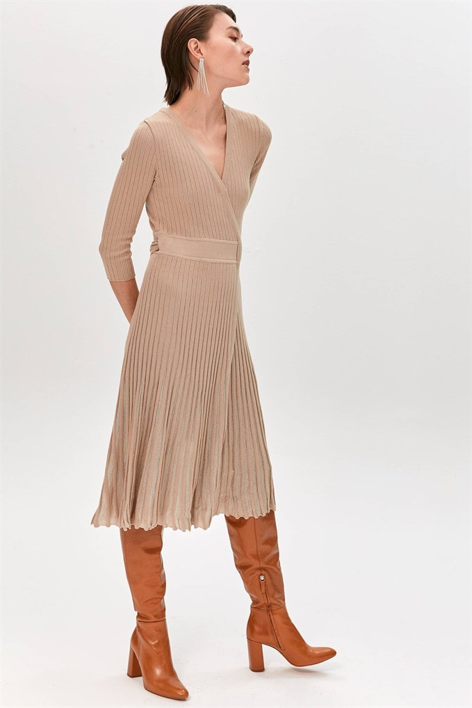 Bej Kruvaze Midi Triko Elbise (20690039_BEJ)