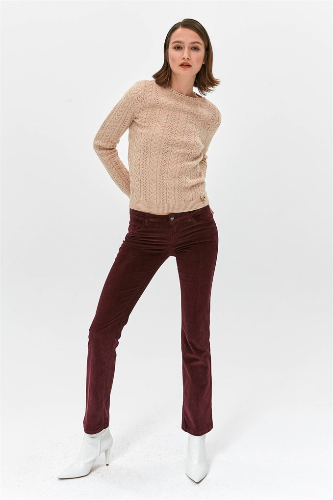 Bordo Fermuar Detaylı Ekose Pantolon (FR19FPCPAMELA2_BORDEAUX)