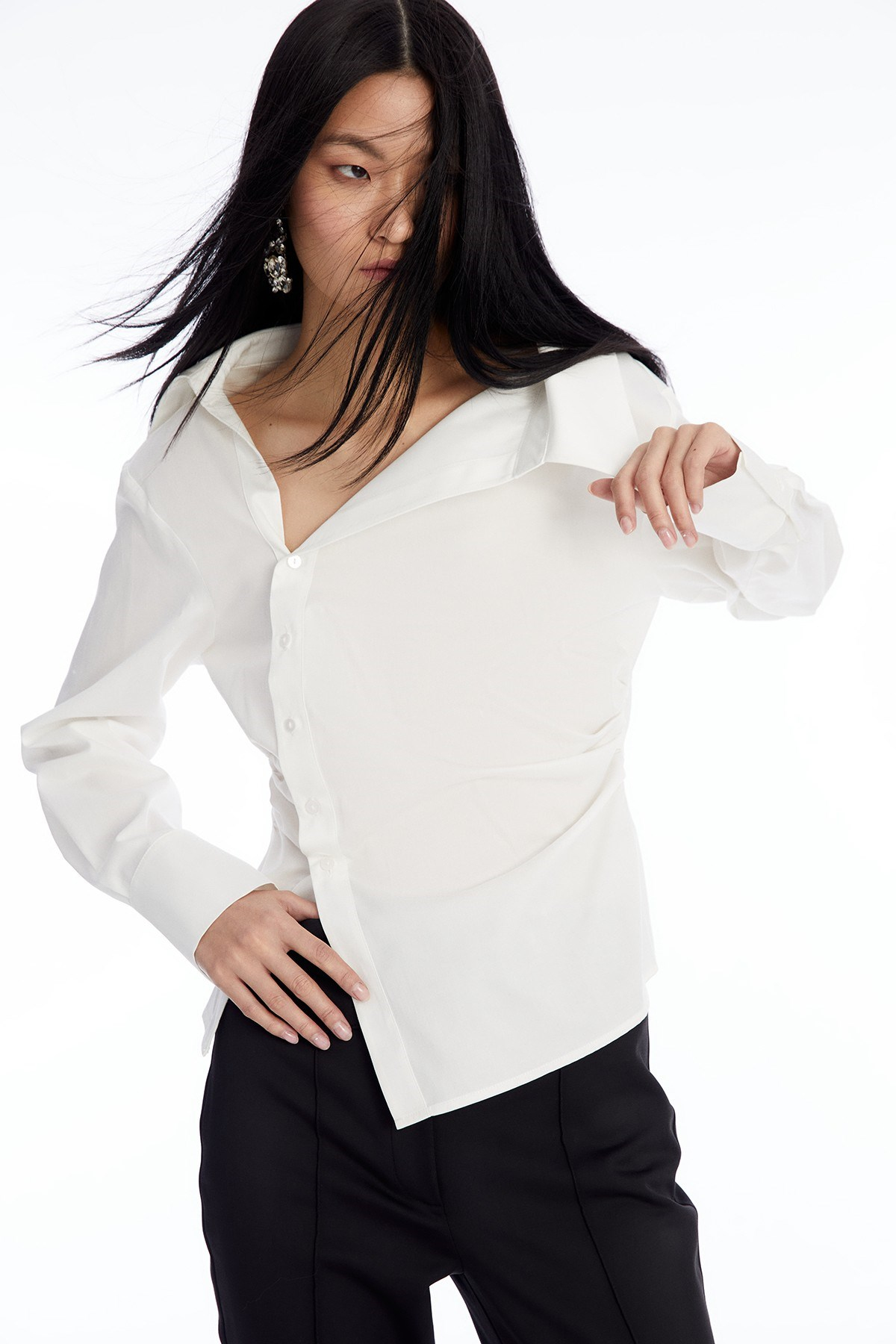 Büzgü Detaylı Ekru Poplin Gömlek (21122086_EKRU)