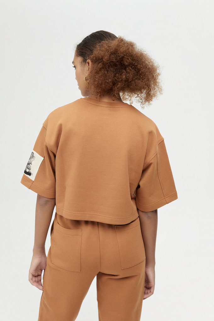 Camel Geniş Kesim Crop T-Shirt (42121030_TUTUN)