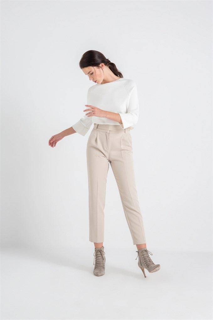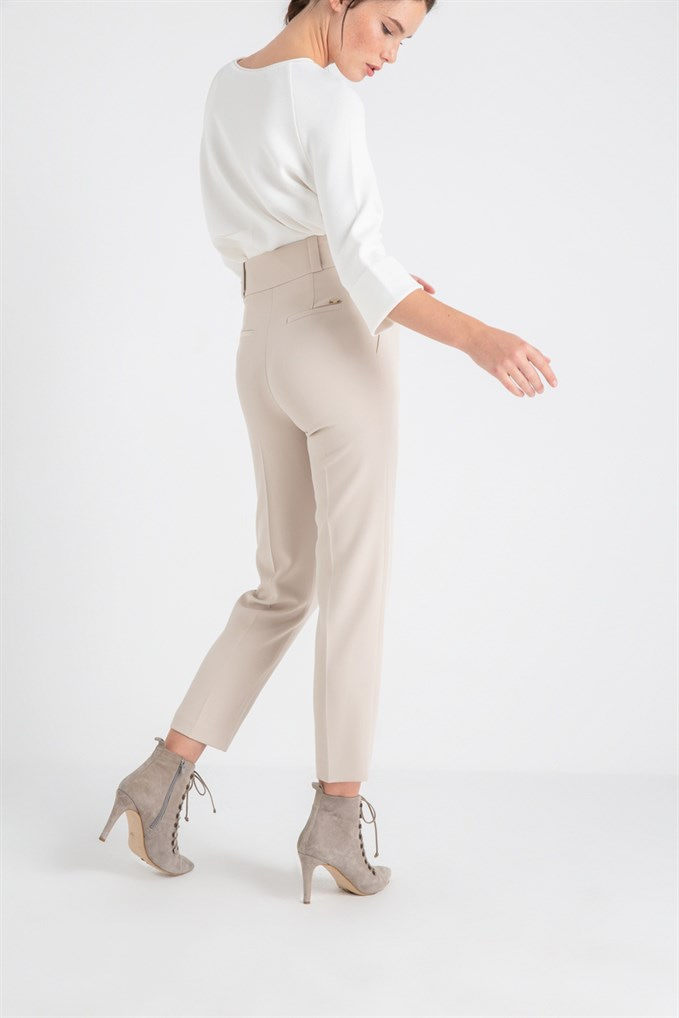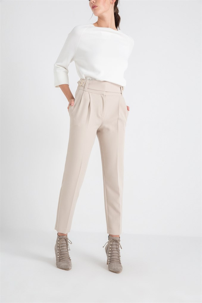 Çift Toka Kemerli Yüksek Bel Pantolon (FR18FP655_SAND)