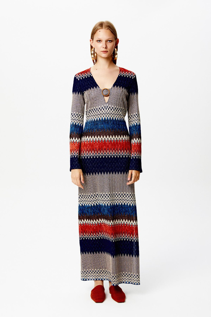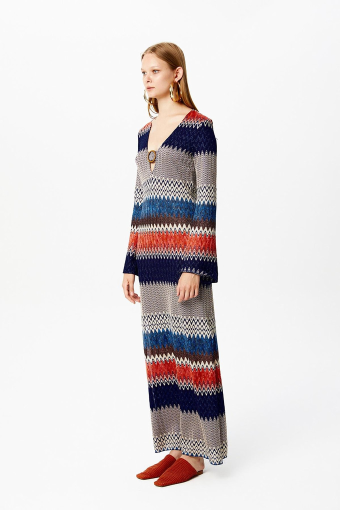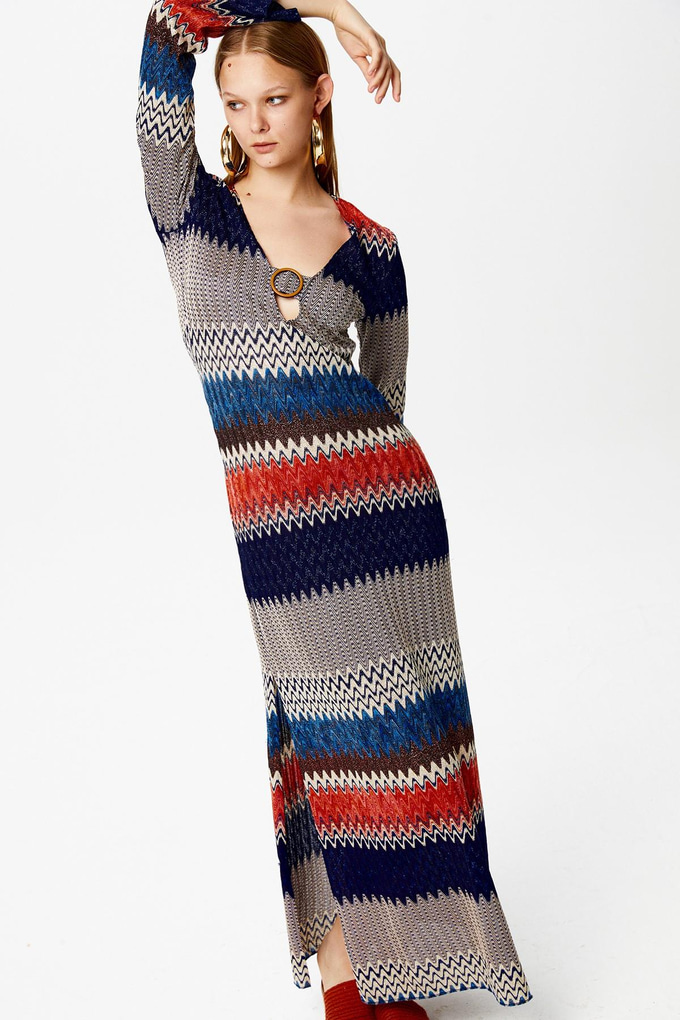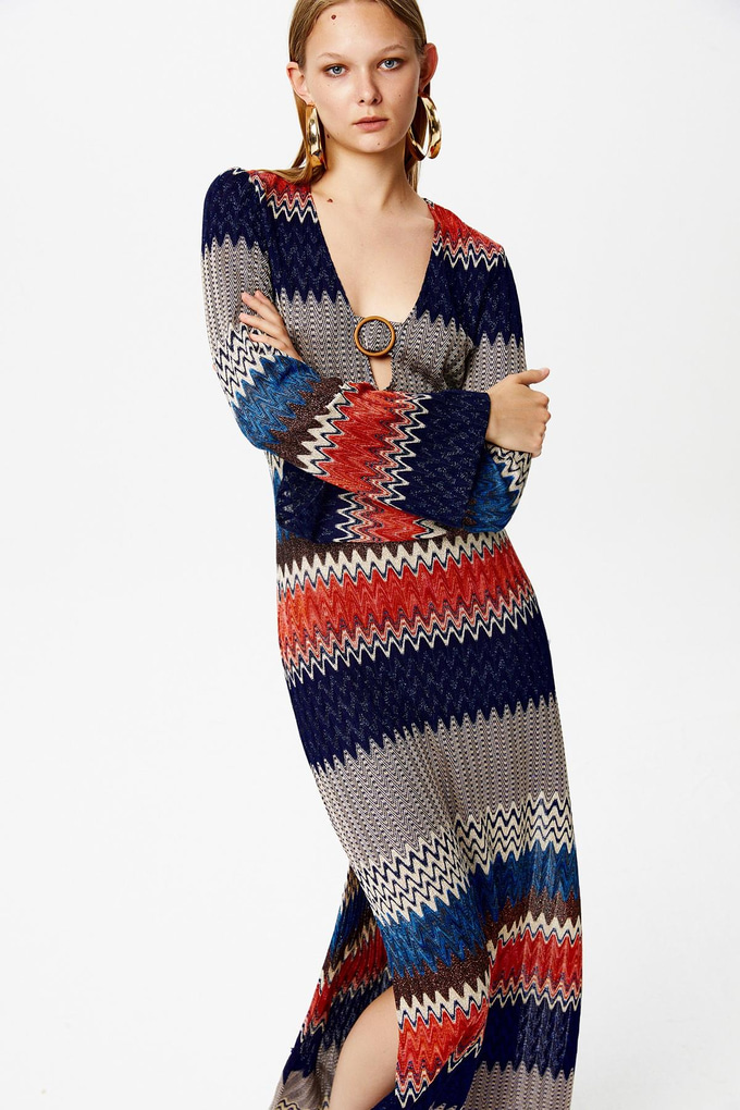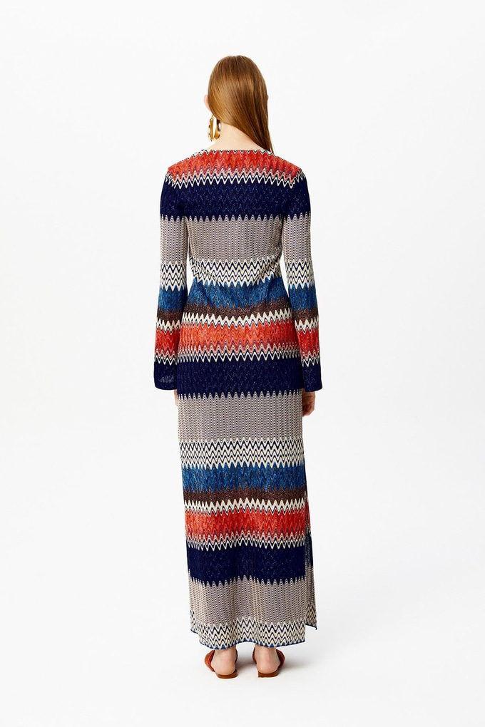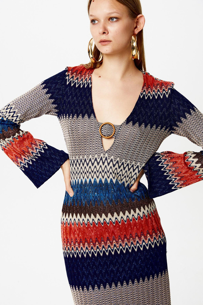 Çok Renkli Zikzak Desenli Lacivert Elbise