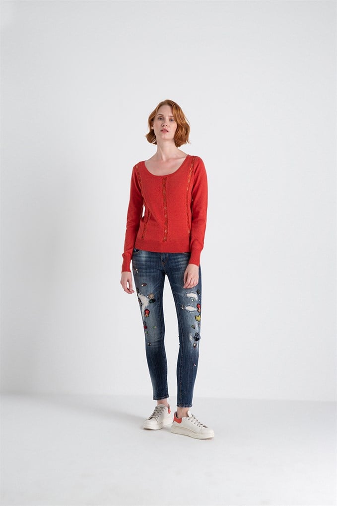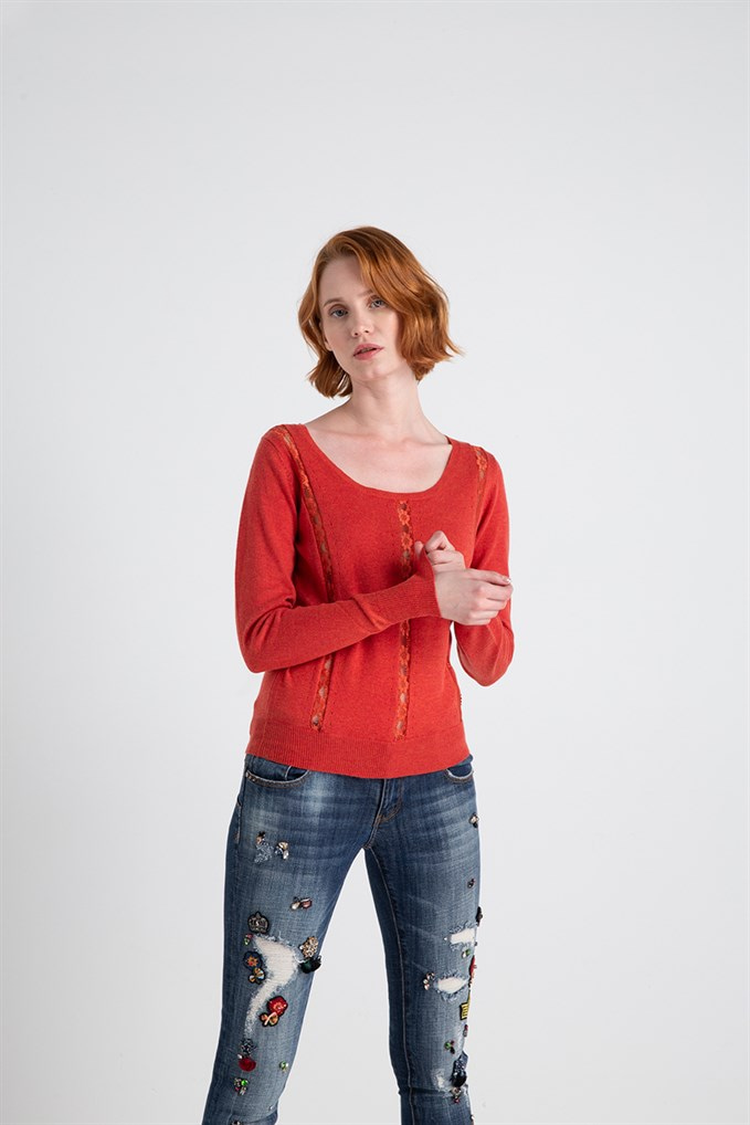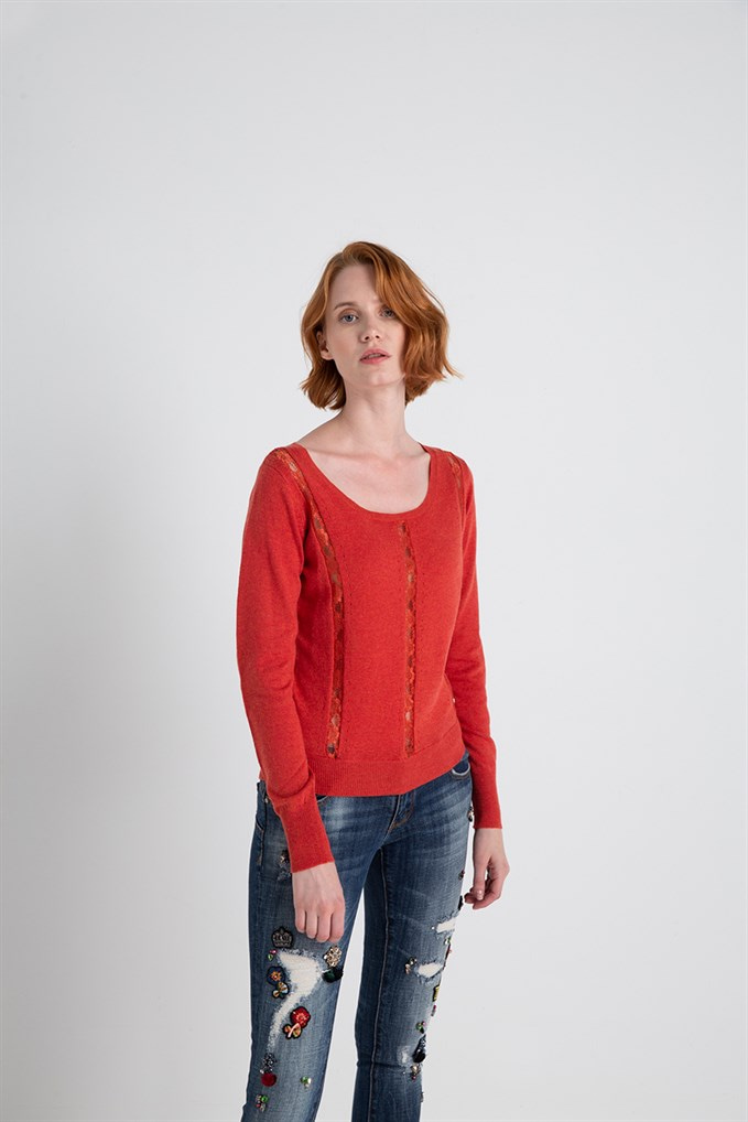 Dantel Güpür Detaylı Triko (FR18FP8052_SAFFRON)