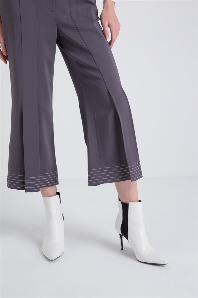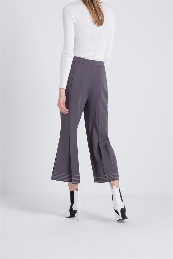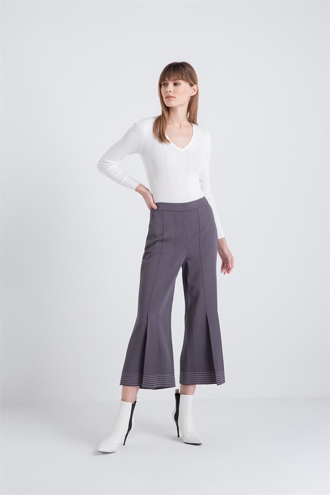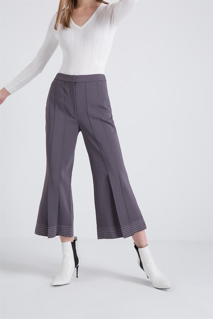 Dikiş Detaylı, Pileli Kısa Pantolon Gri (20180027_GRI)