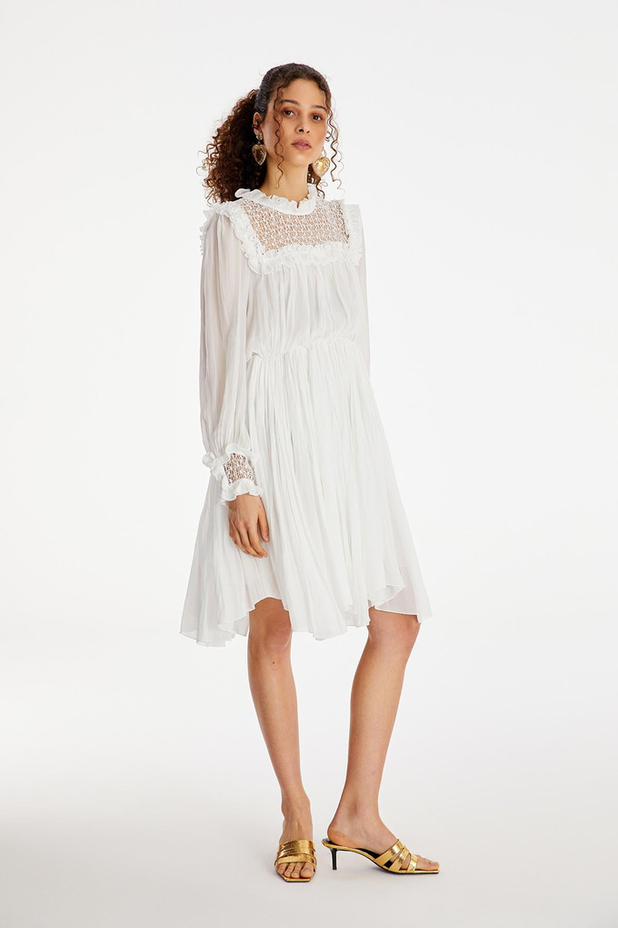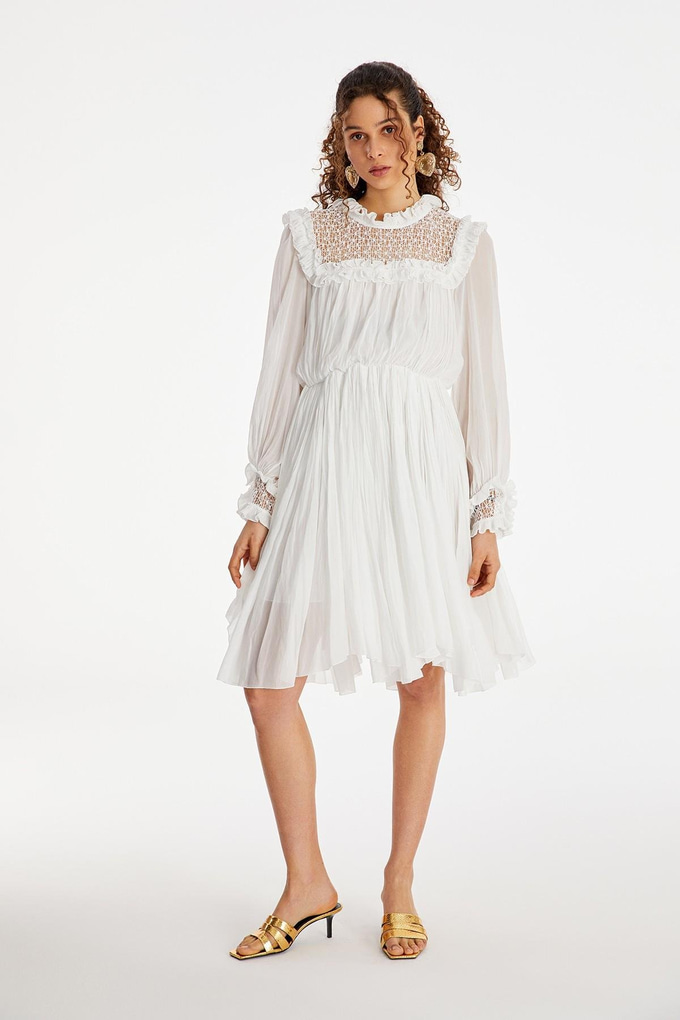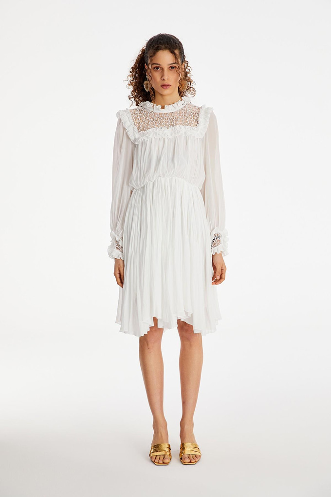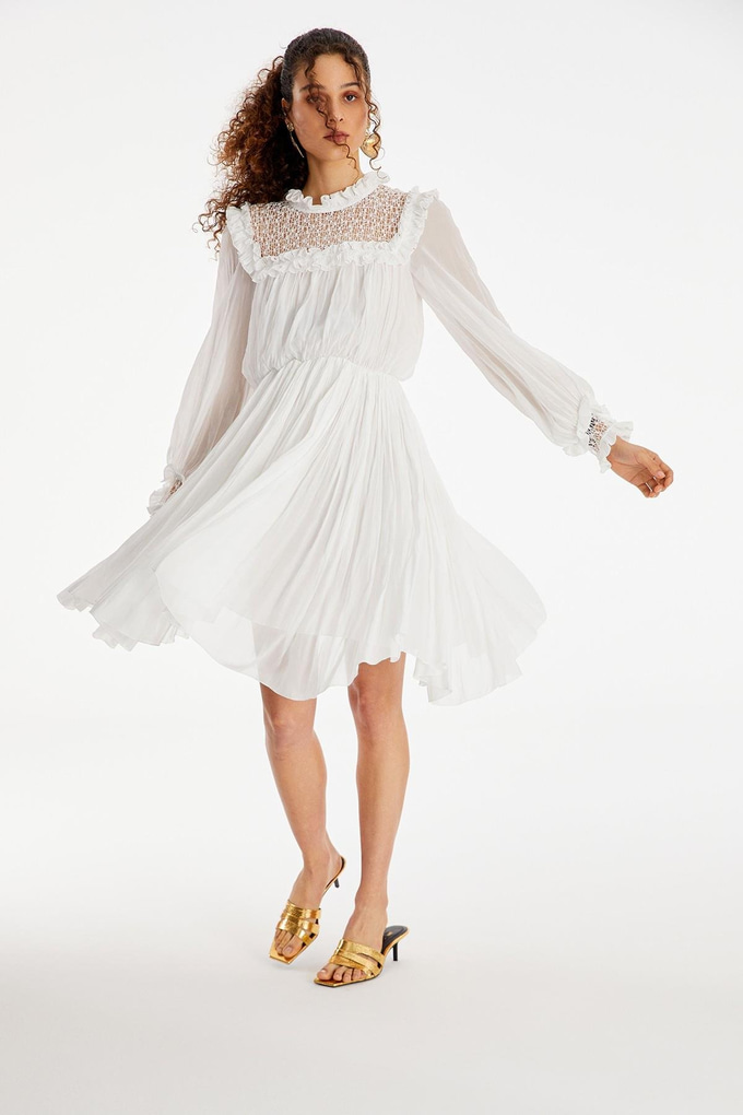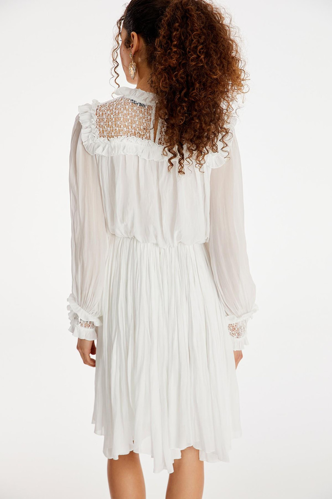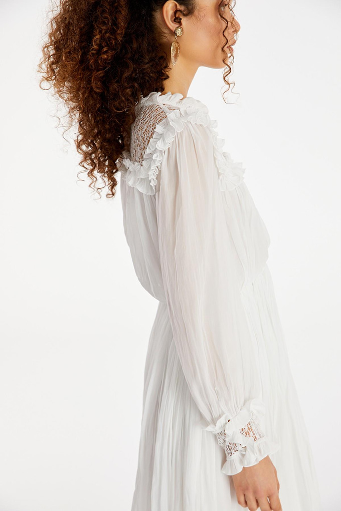 Dökümlü Ekru Asimetrik Elbise (10622107_EKRU)
