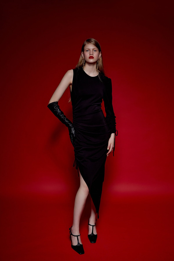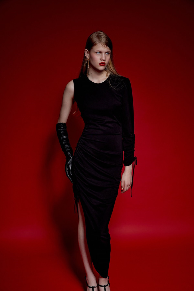 Drapeli Yırtmaçlı Siyah Elbise (20622030_SIYAH)