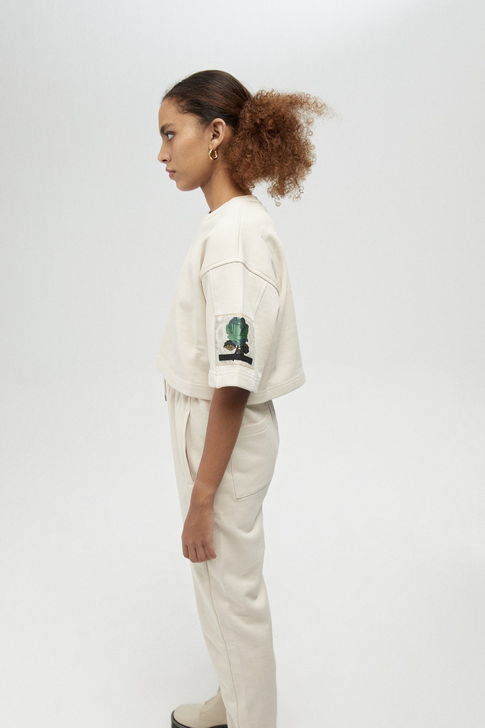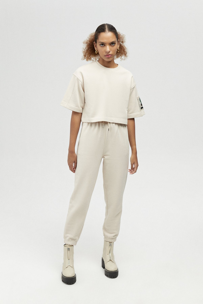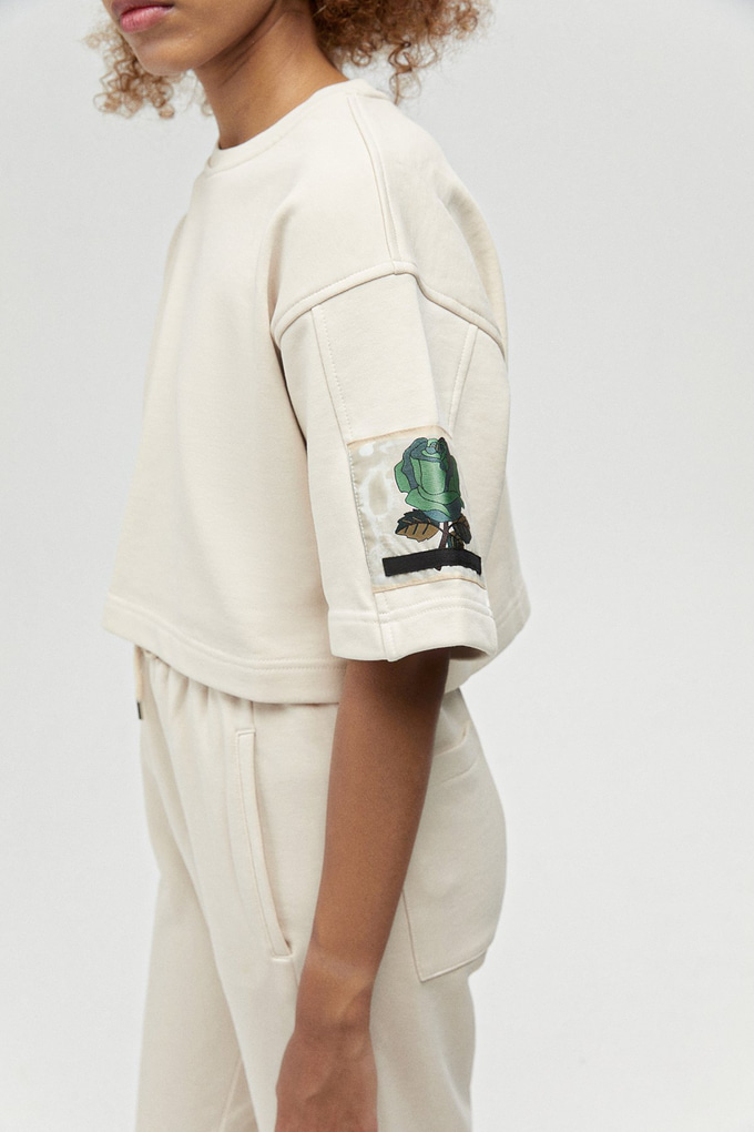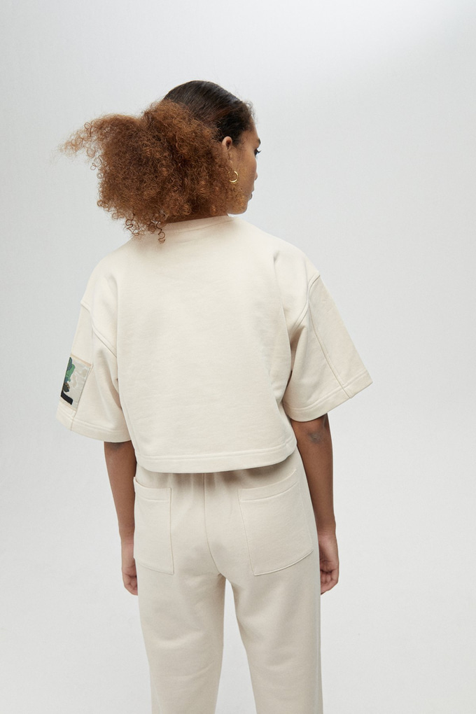 Ekru Geniş Kesim Crop T-Shirt (42121030_NUD)