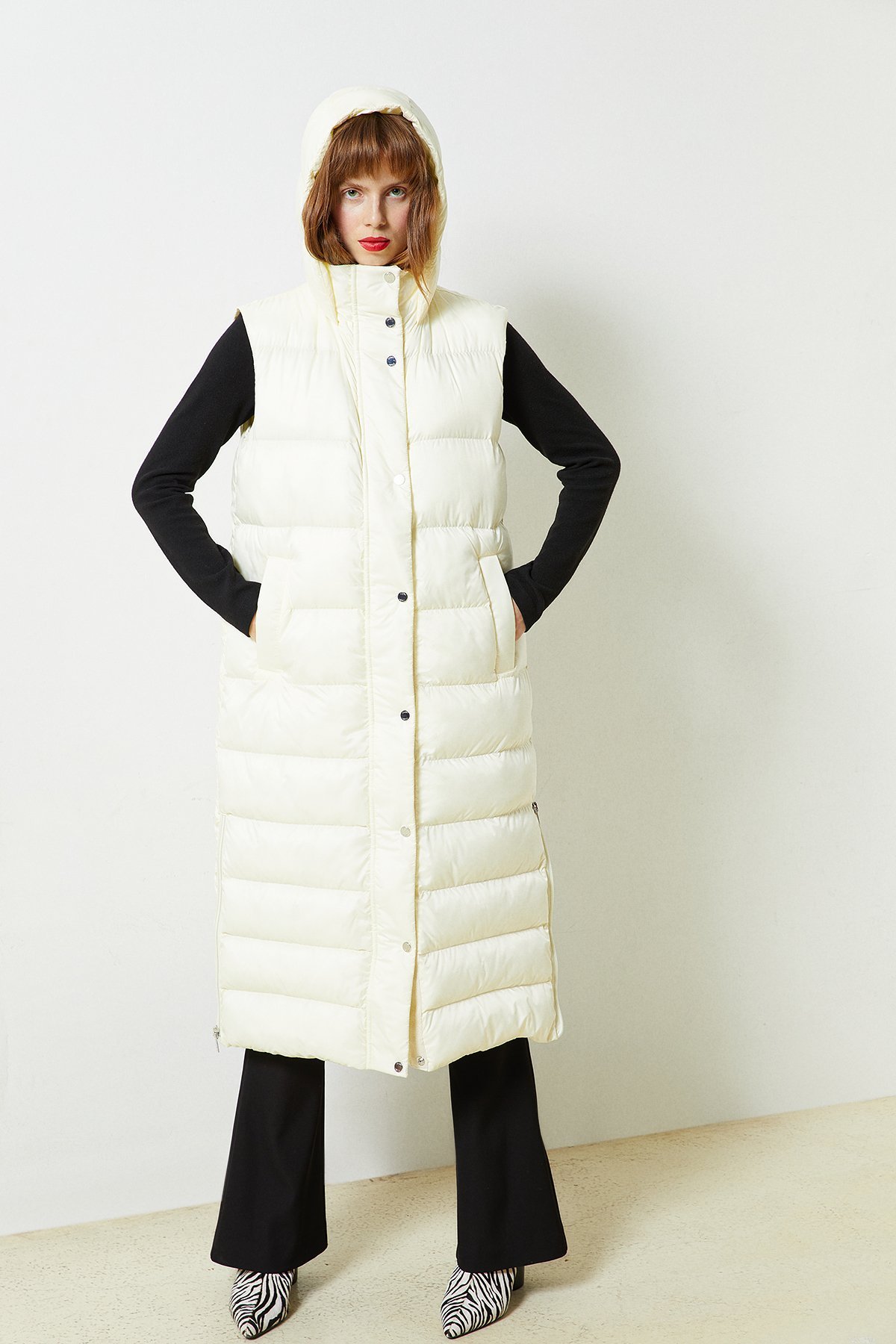 Gilet with a High-Collar and Hood Front Pockets Metal Snap-Button Fastening at the Front
