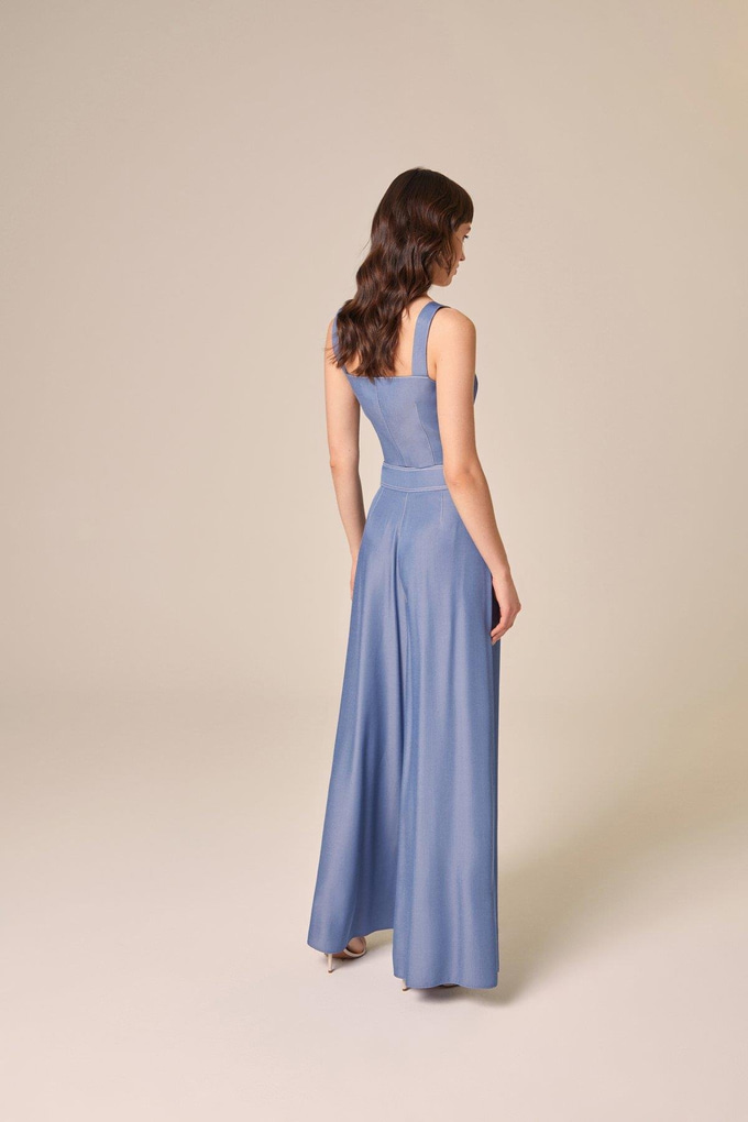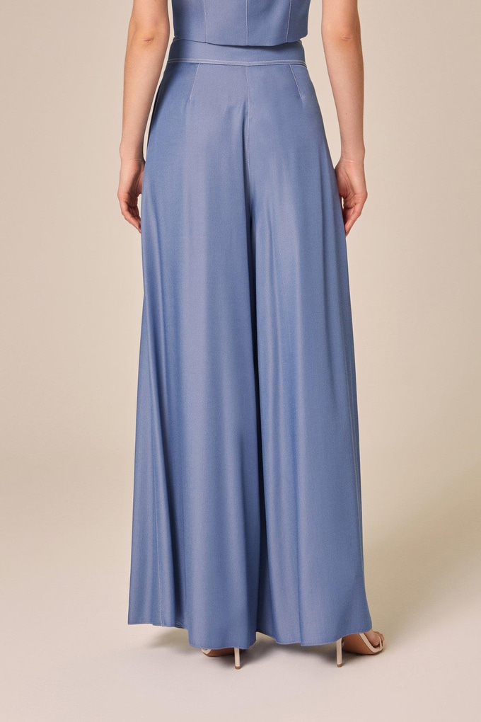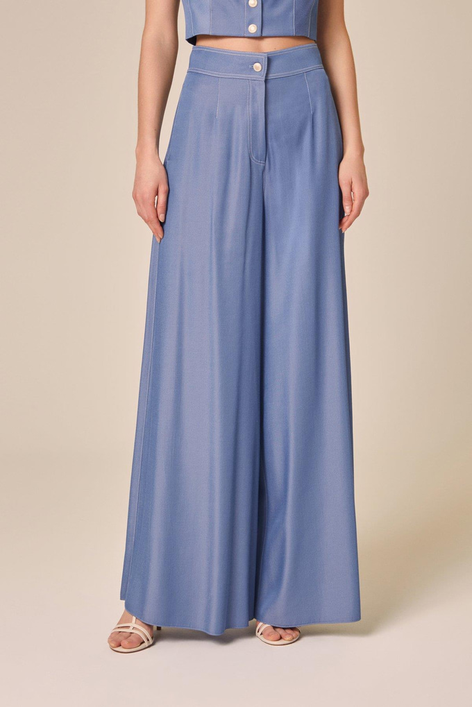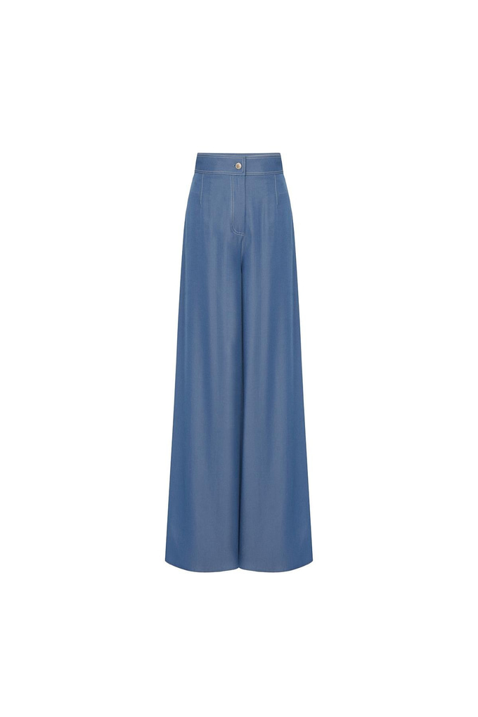 Denim Effect Wide Leg Indigo Trousers