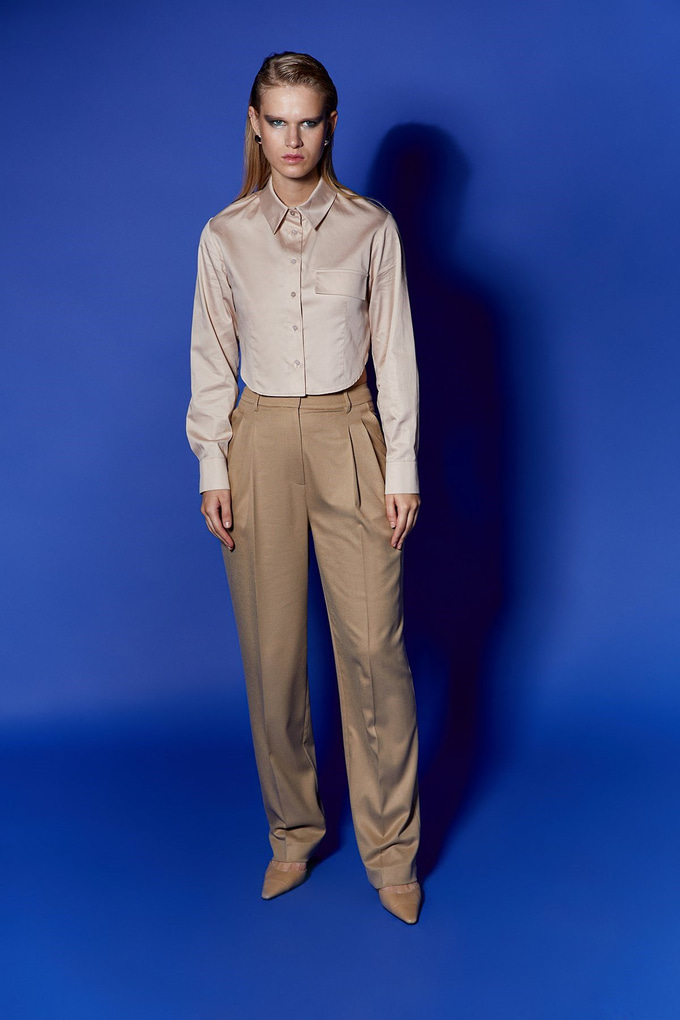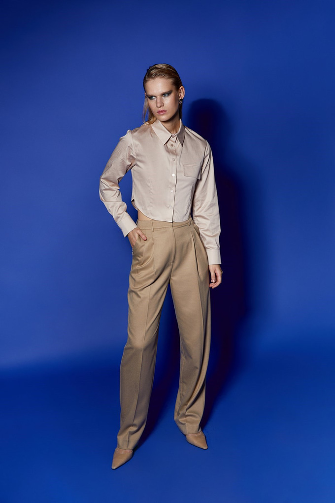 Poplin Beige Crop Shirt (21122081_BEJ)