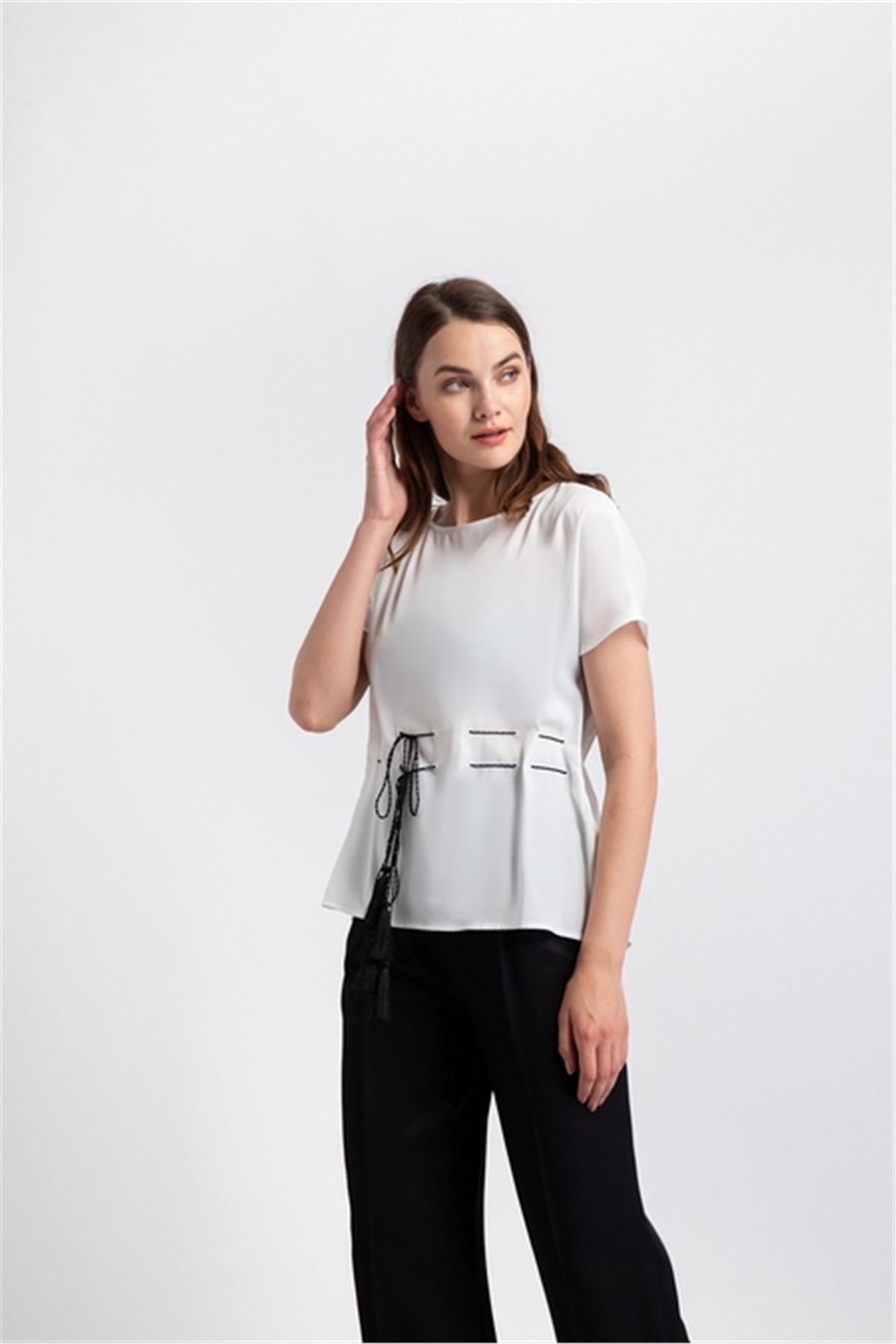 RUE RELAXED FIT BLOUSE WITH ROPE DETAIL WAIST ECRU (10990068_EKRU)