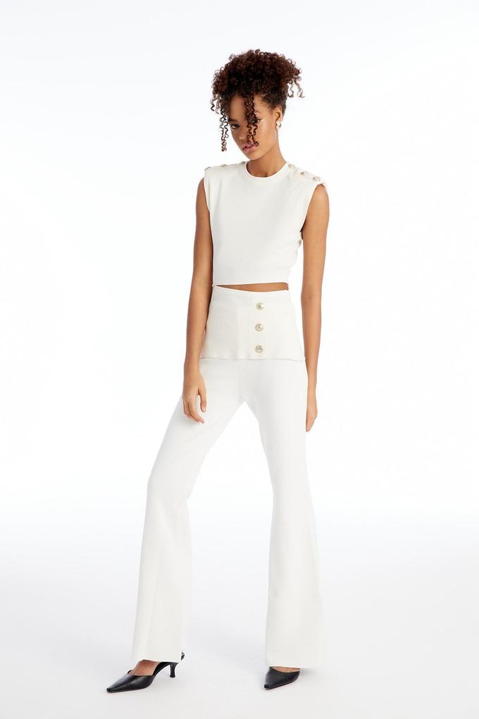 • Sleeveless Button Detailed Cut-Out Featuring Knit Top