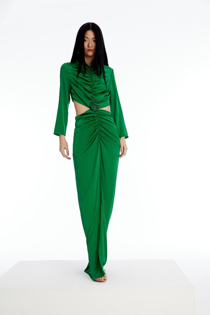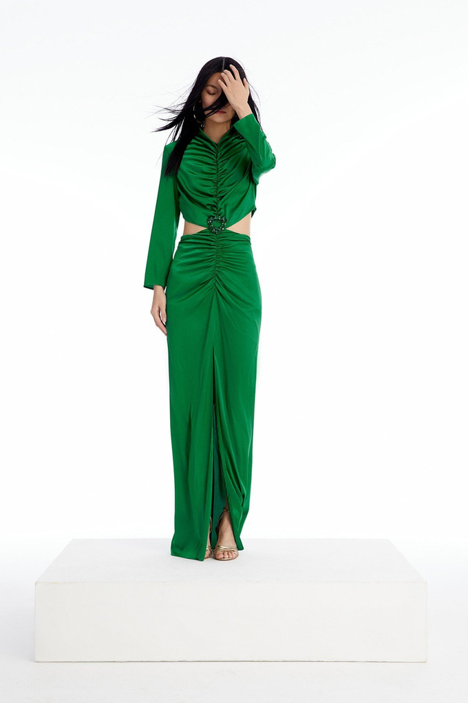 Cut-Out Draped Green Dress (20622115_YESIL)