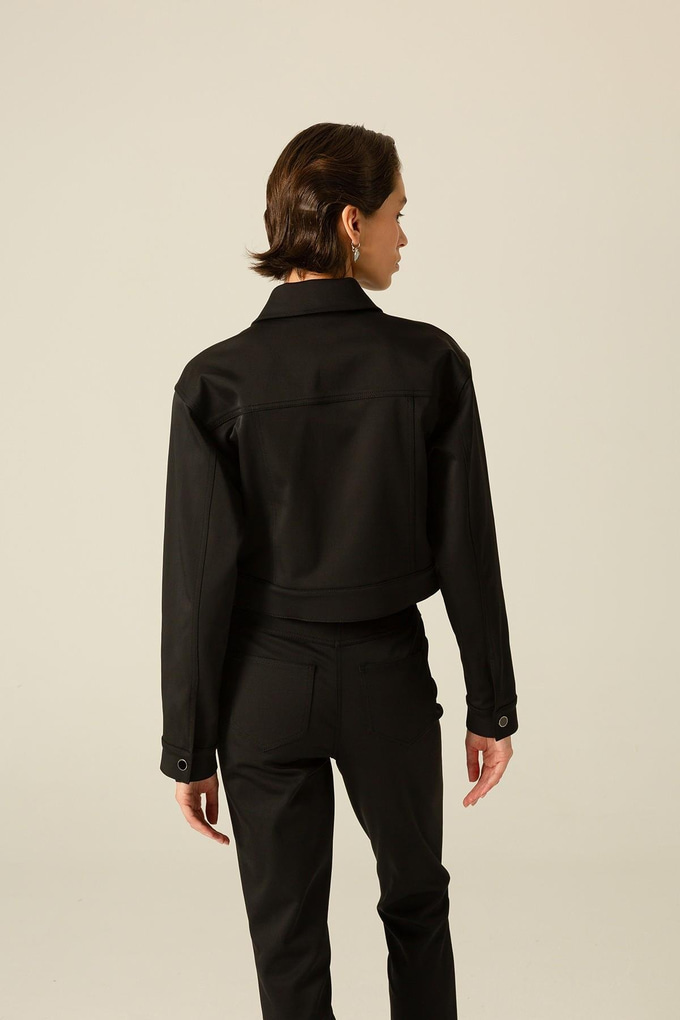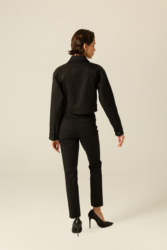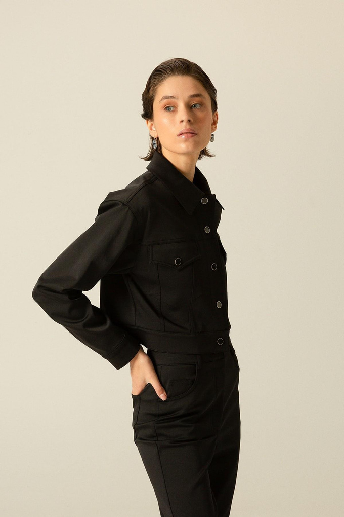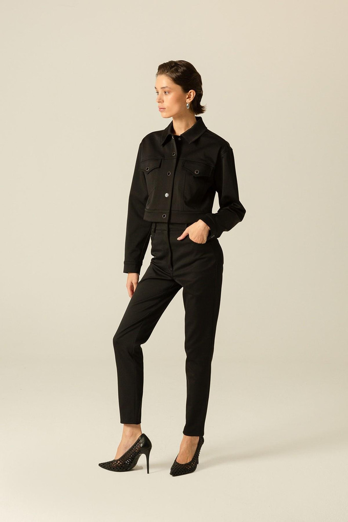 Front Buttoned Pocketed Black Jacket (20823049_SIYAH)