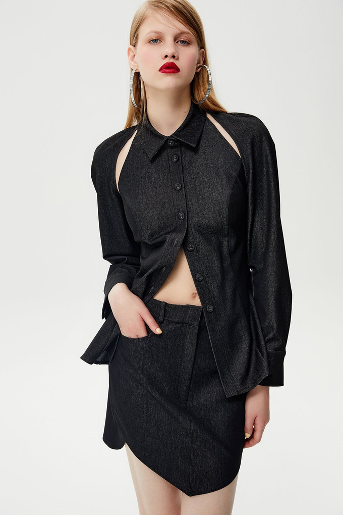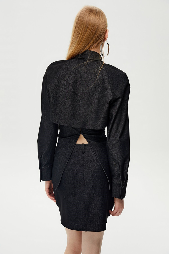 High-Waist Denim Black Skirt