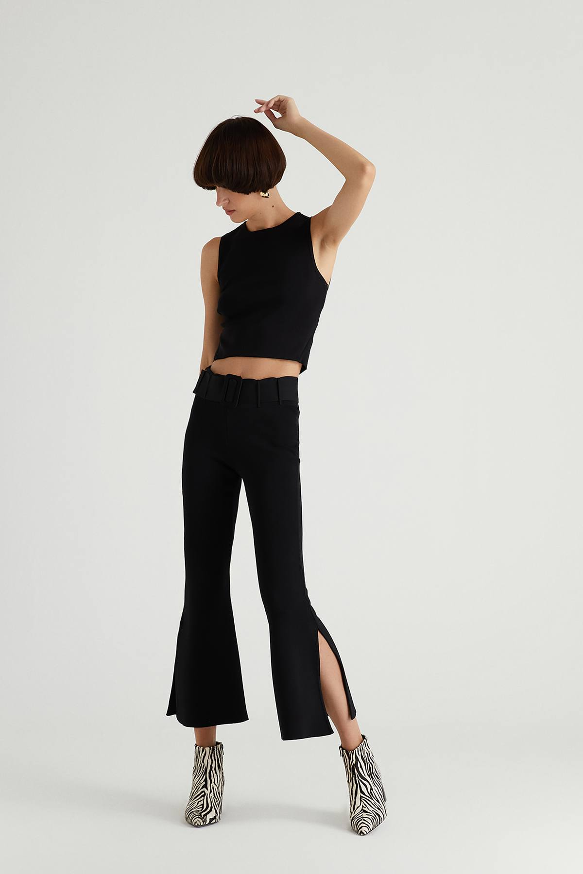 Wide-Leg Knit Trousers With Belt (10102033_SIYAH)