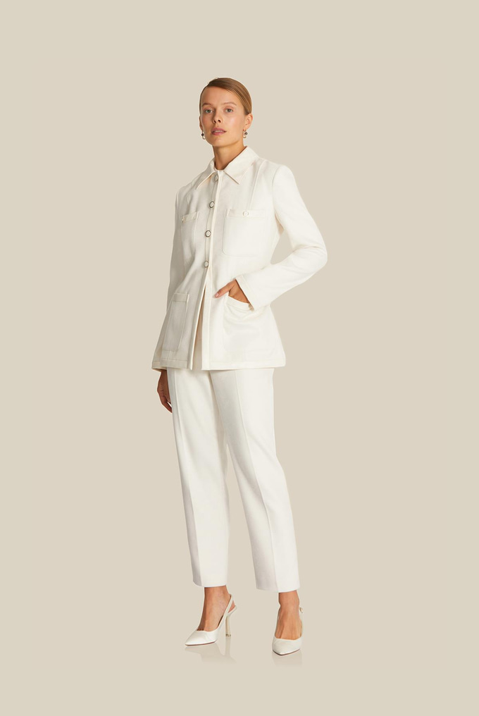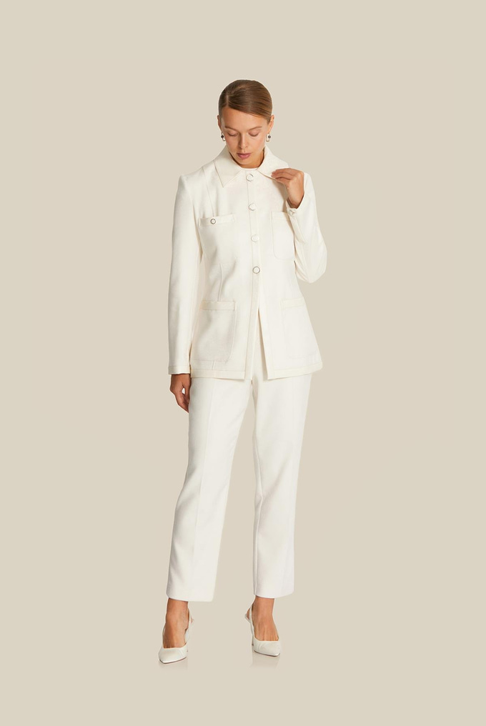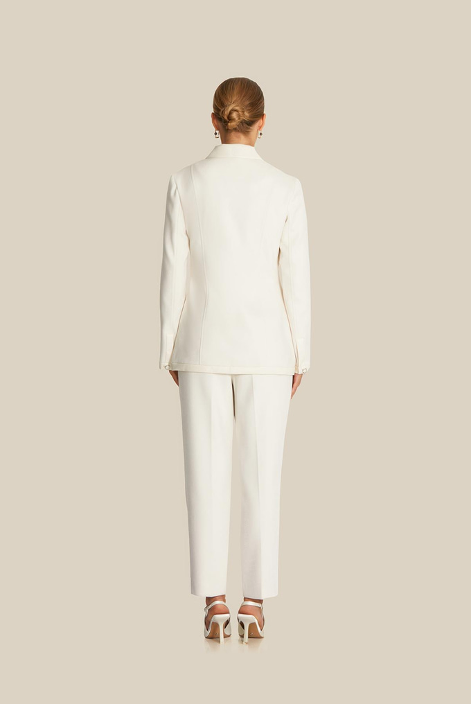Leather Trim Detailed Wool Ecru Jacket (20823010_EKRU)