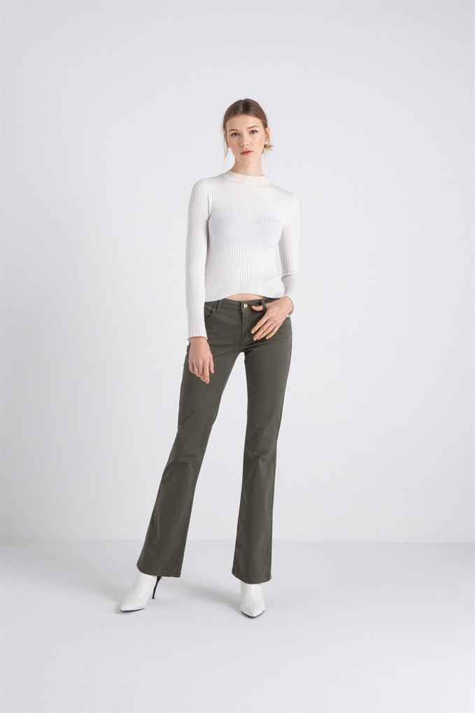 Low-Waisted Half Flared Trousers (FR18FPCPAMELA1_FOREST)