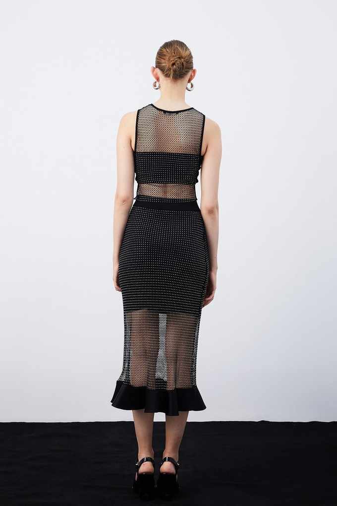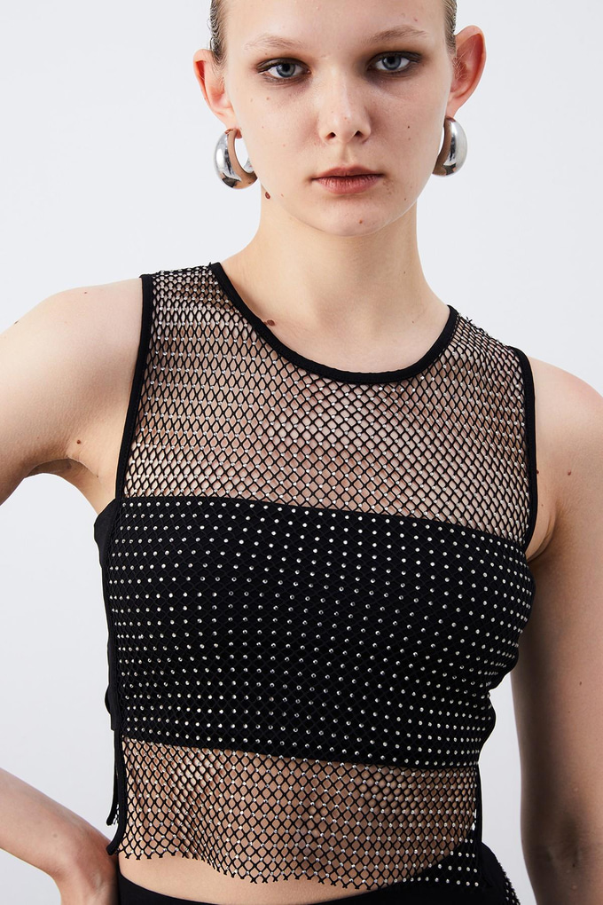 Rhine Stone Black Crop Top (10923032_SIYAH)