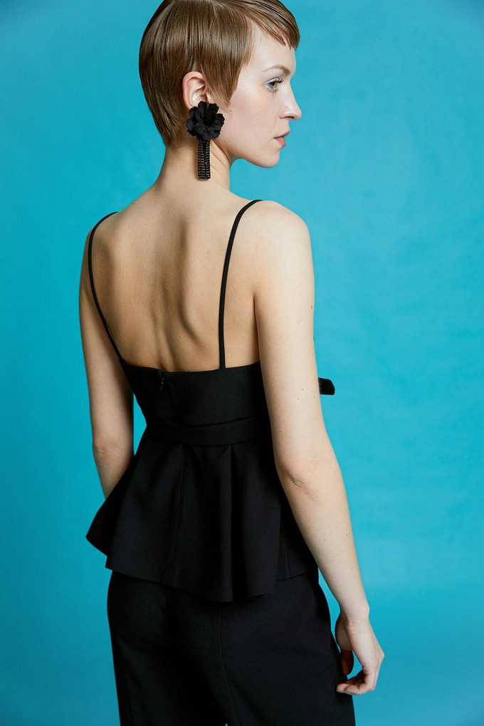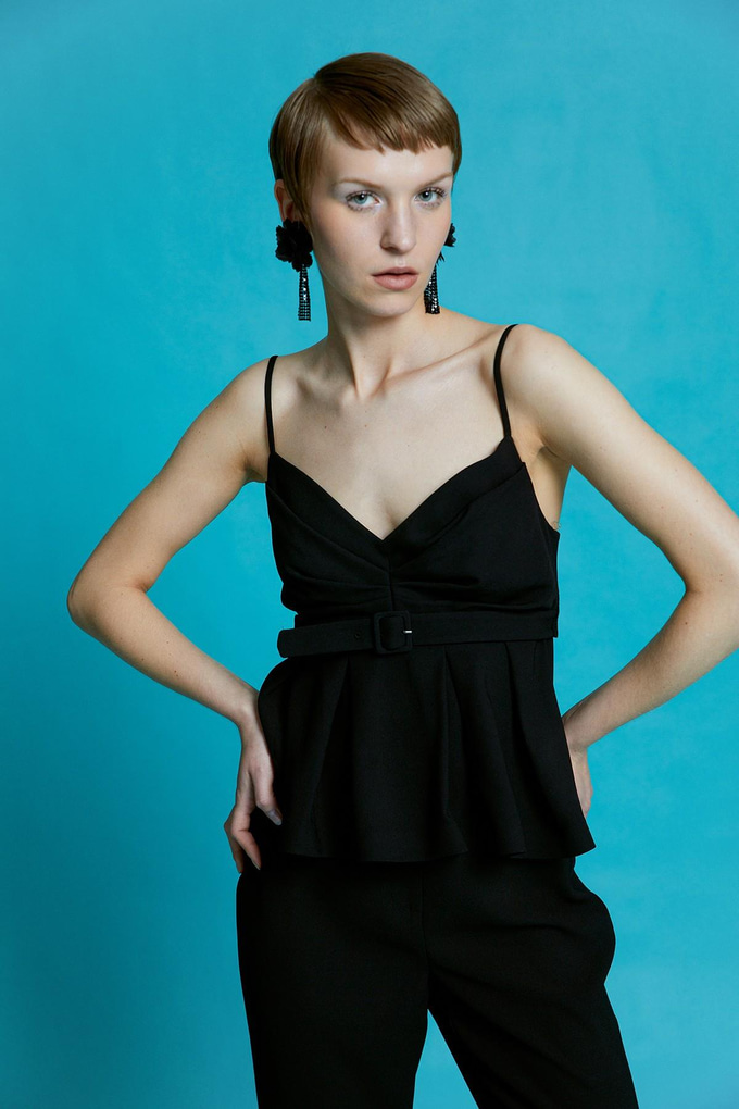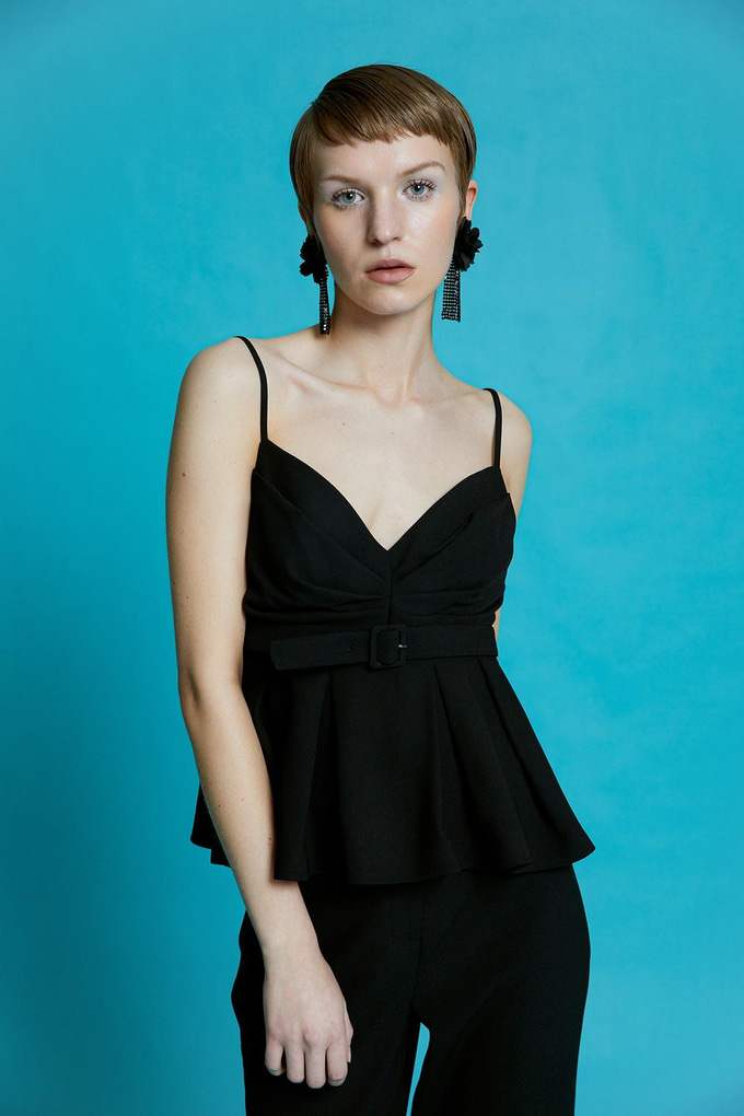 Ruffled Black Blouse with Belt