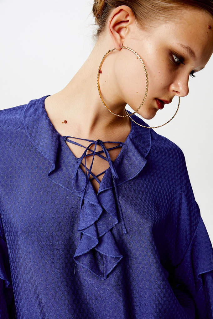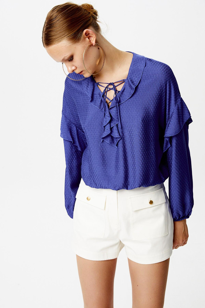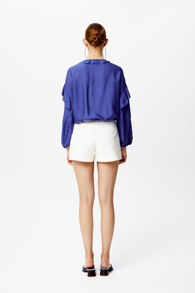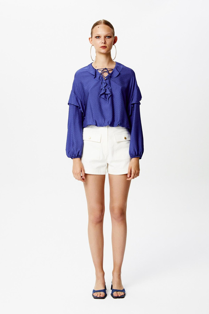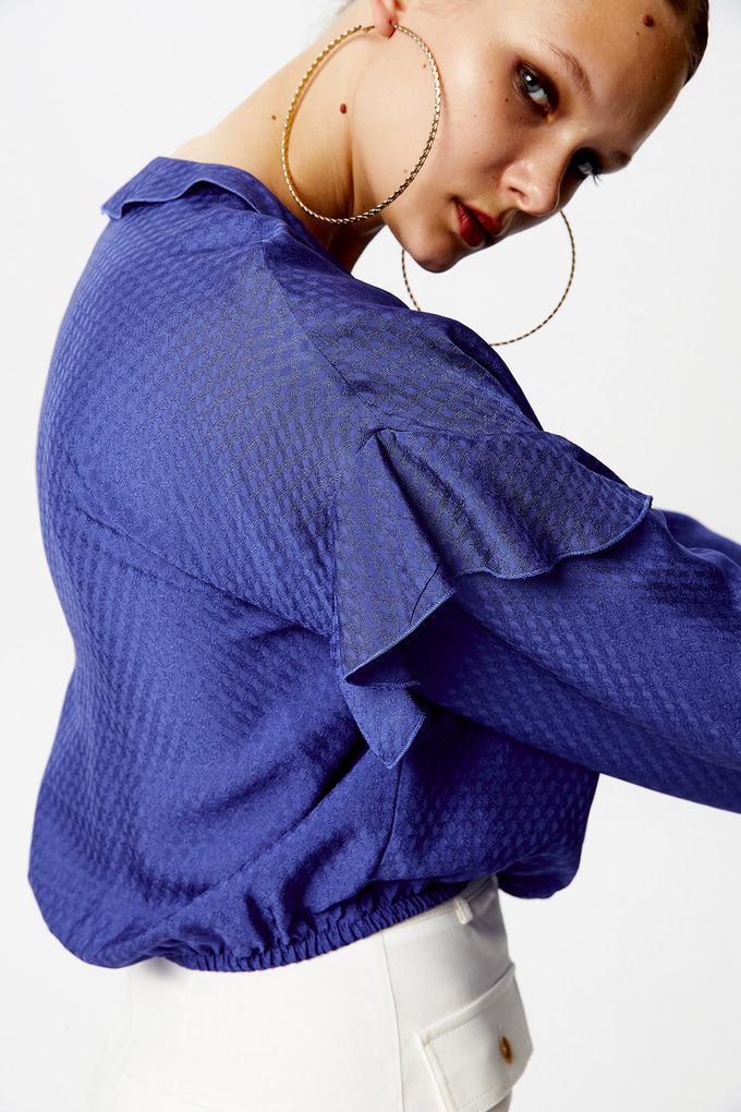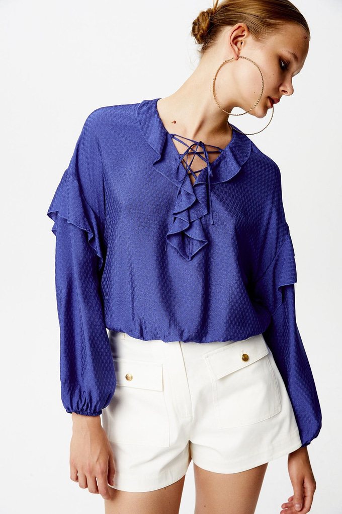 Ruffled Blue Semi-Sheer Blouse (10923103_LACIVERT)
