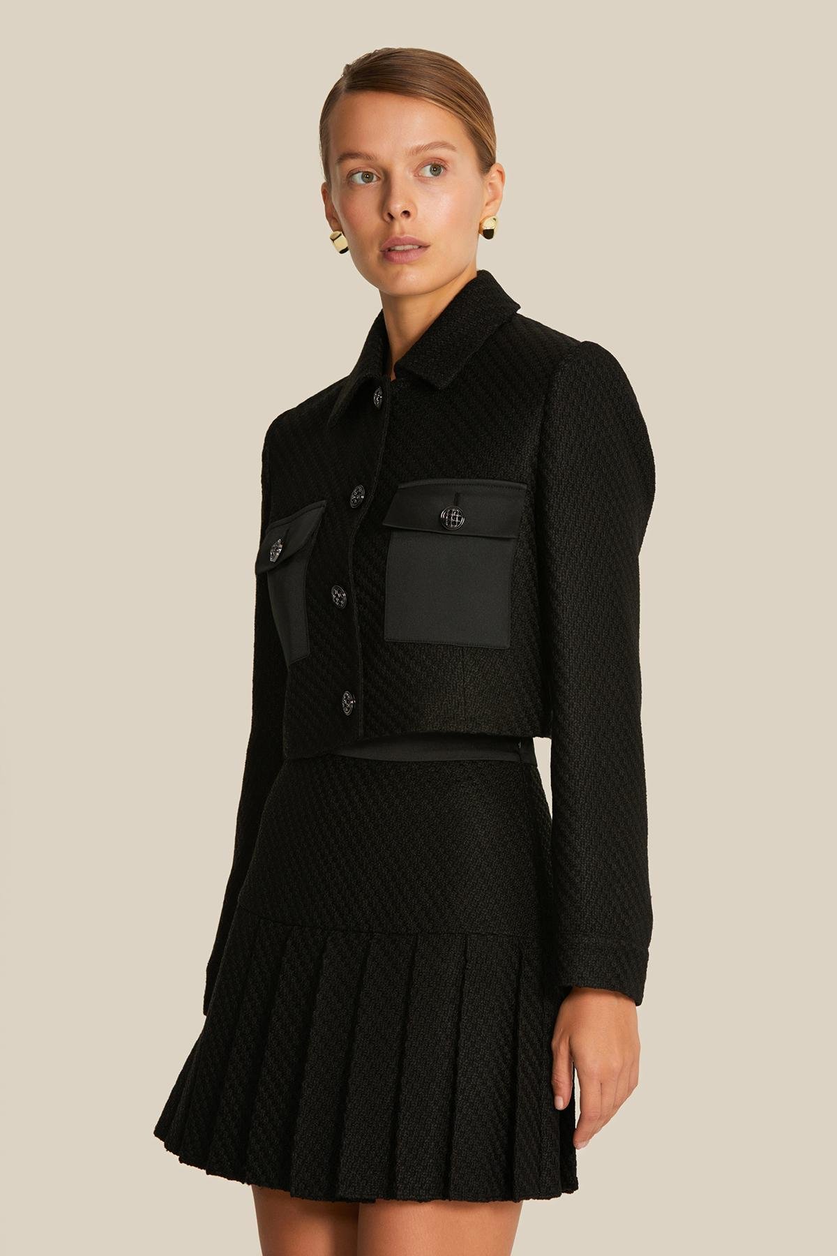 Satin Pocket Detail Crop Black Tweed Jacket (20823019_SIYAH)