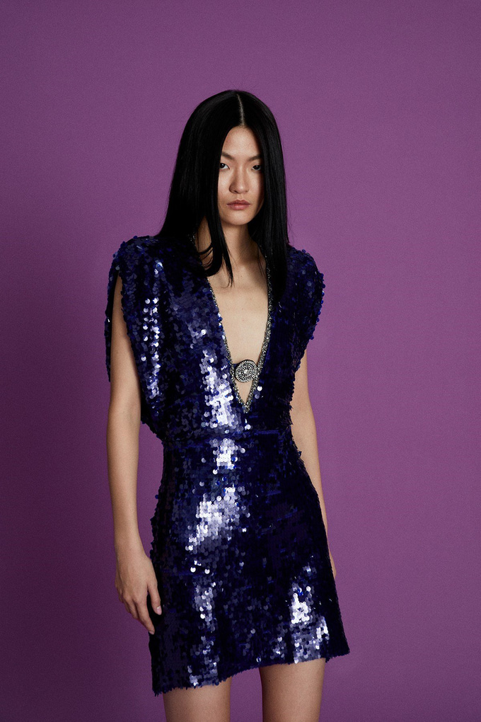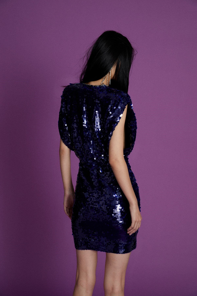 • Short Sleeves Deep V Neck Mini Sequin Dress