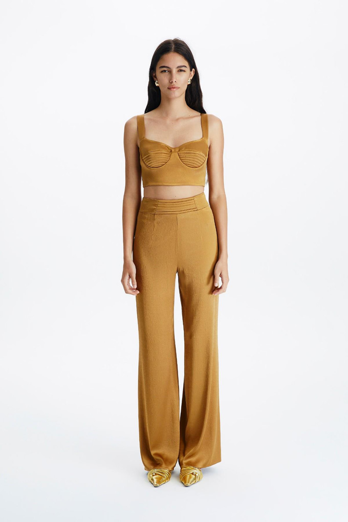 Stitch Detailed Brown Bustier (11423065_KAHVE)