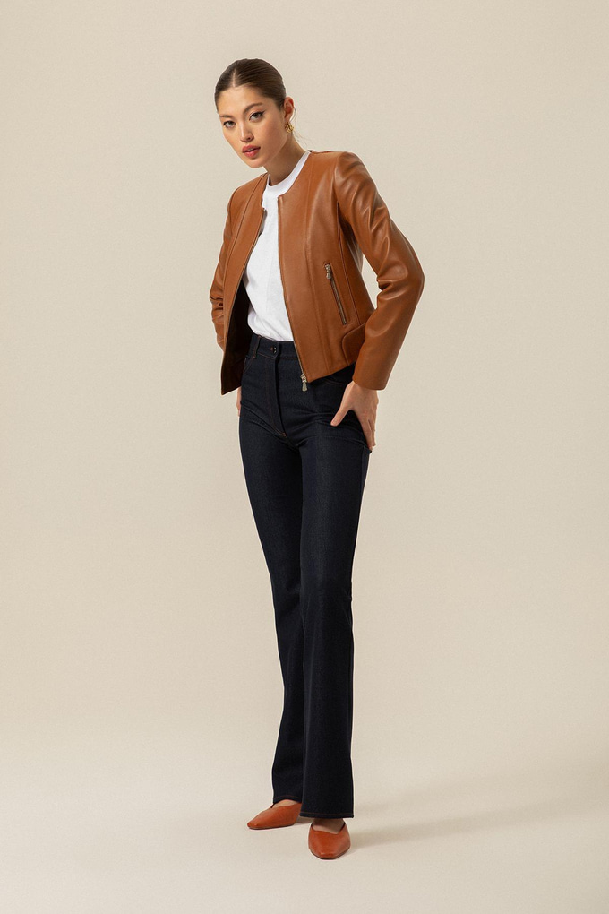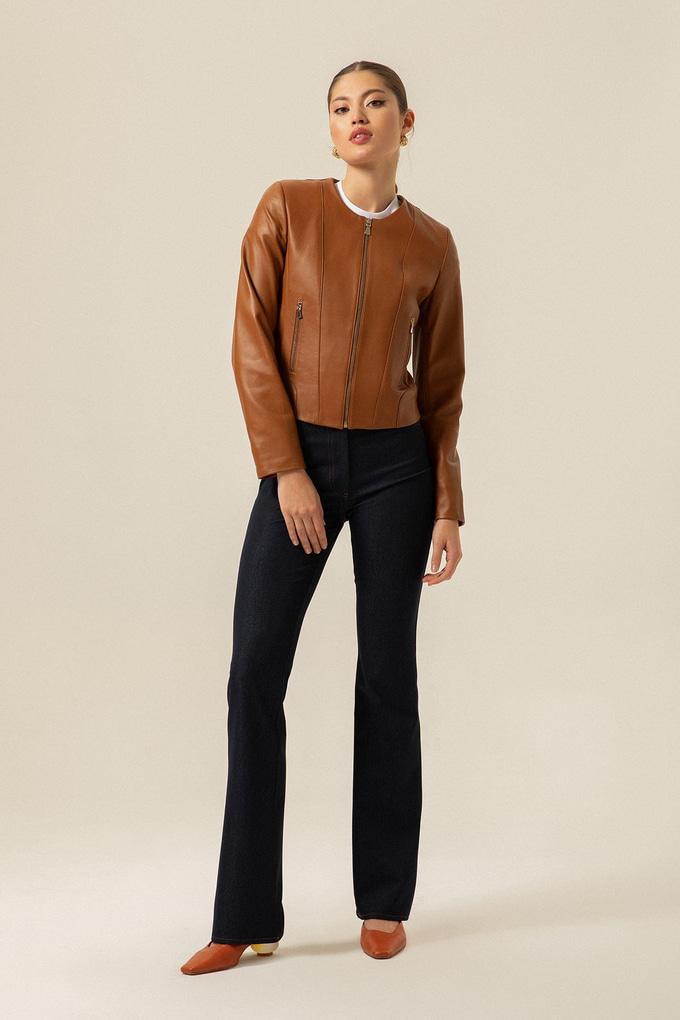 Zip Detail Tan Leather Jacket (20823085_TABA)