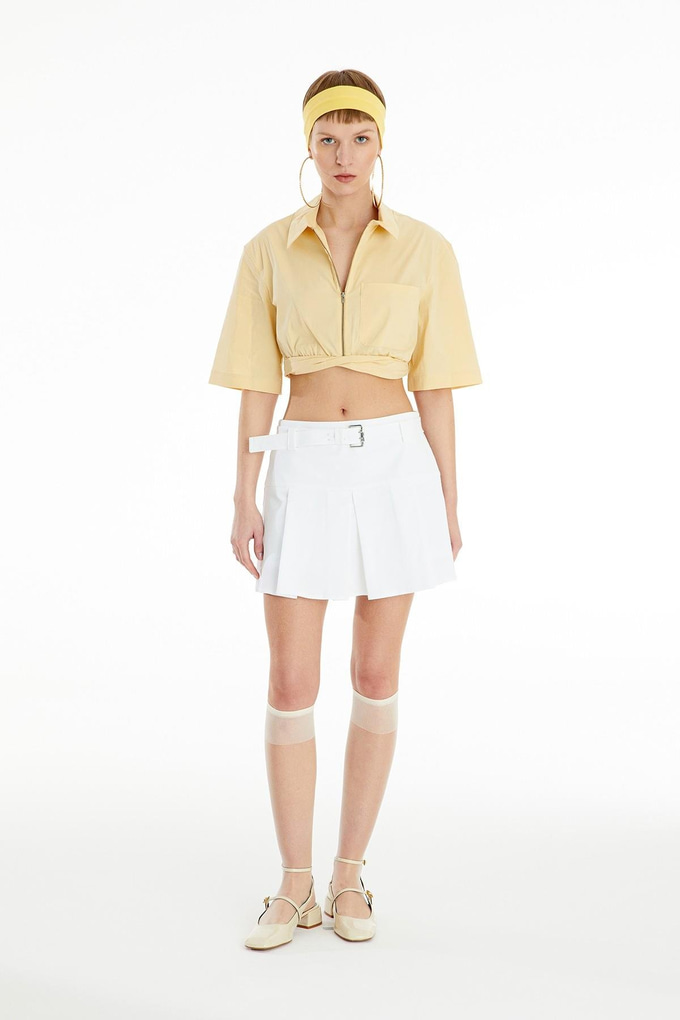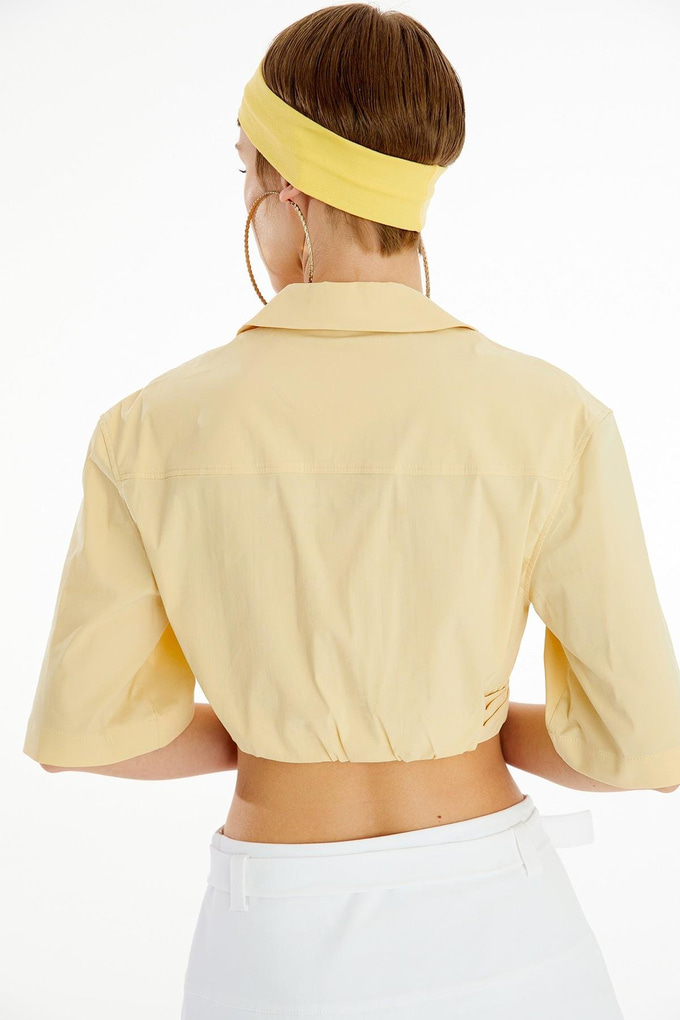 Zip-Up Yellow Crop Shirt (11123031_BEJ)