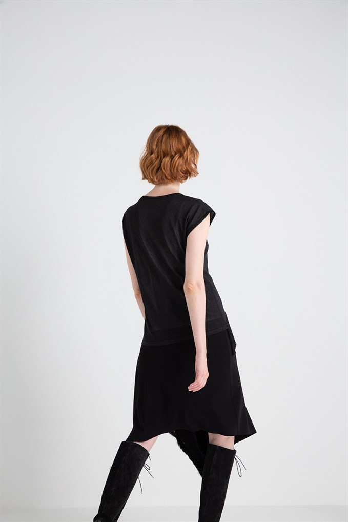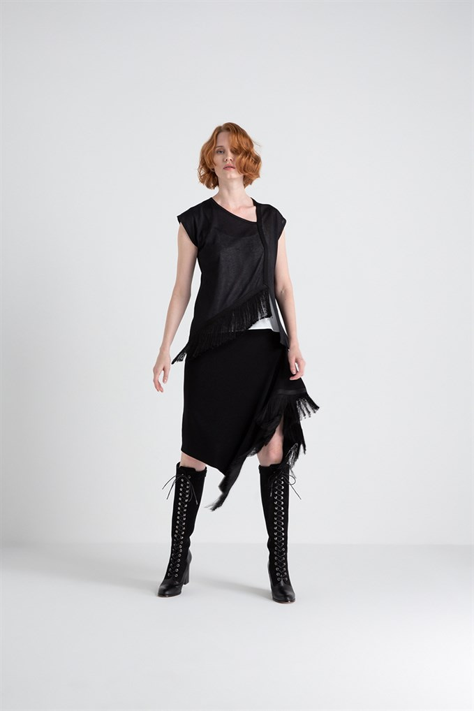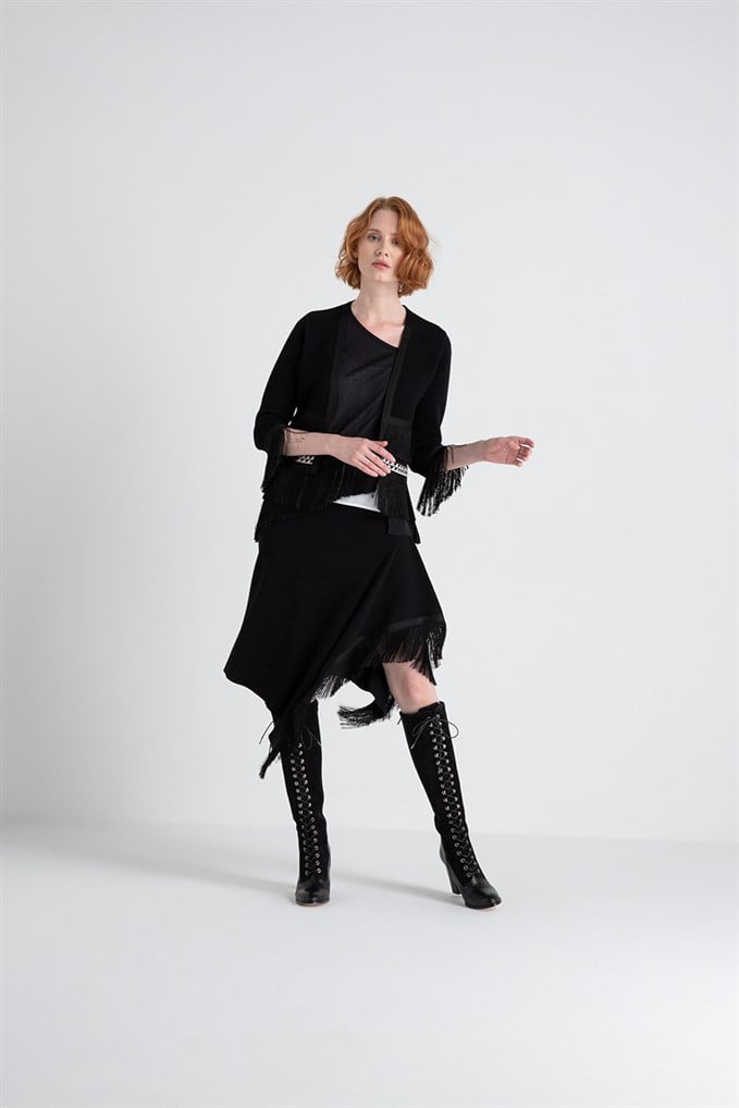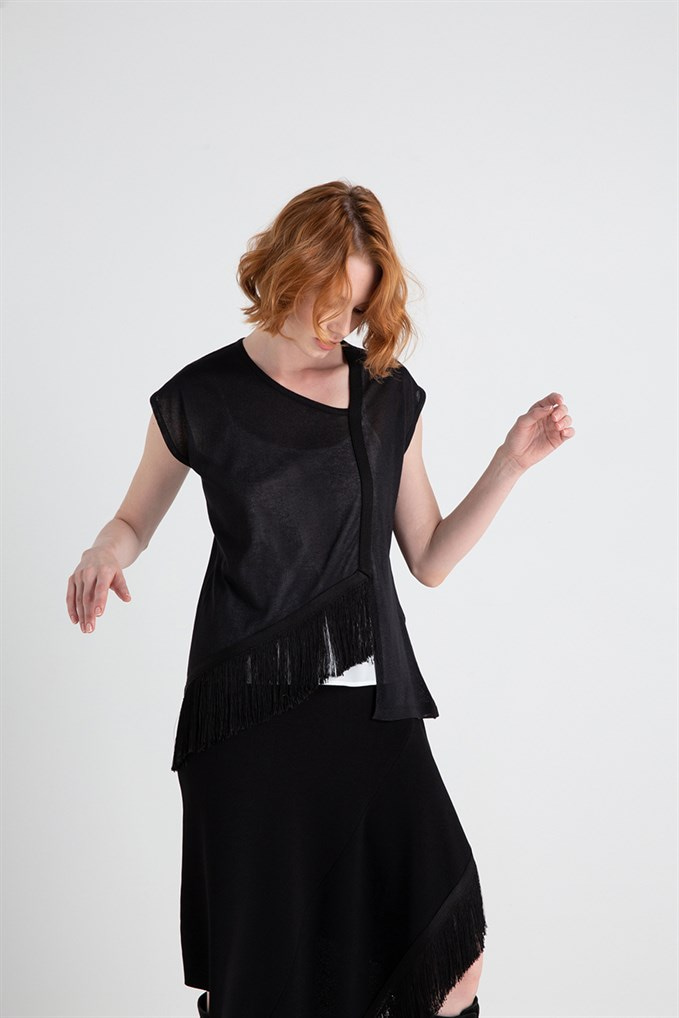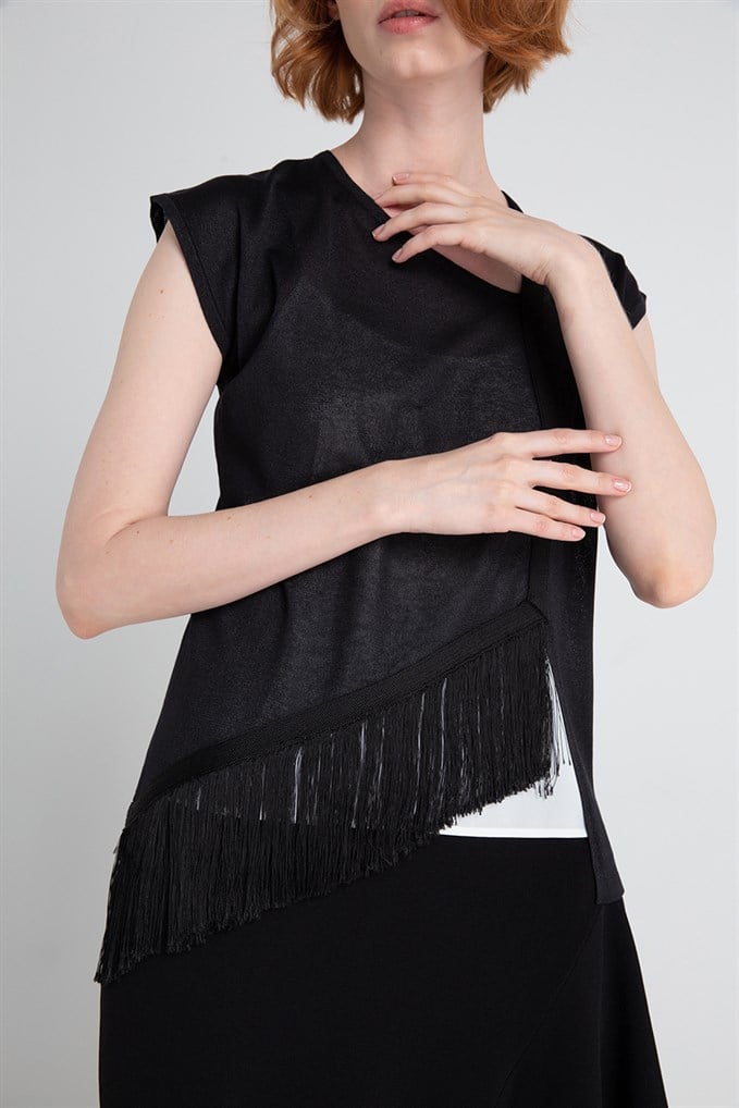 Etek Ucu Püsküllü Asimetrik Triko Bluz Siyah