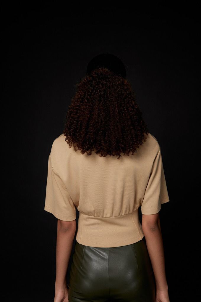 Fermuar Detaylı Bej Crop T-Shirt (42222034_BEJ)