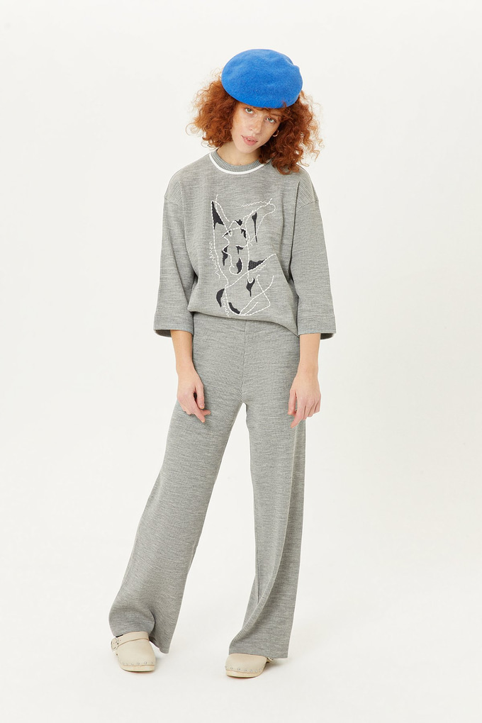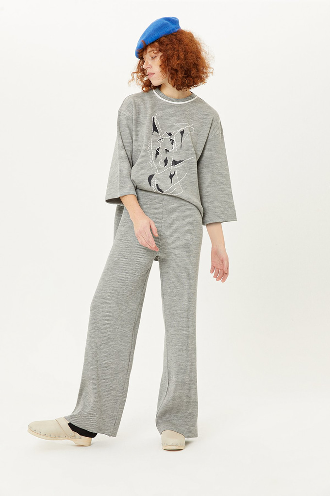 Geniş Kesim Gri Triko Pantolon (40121025_GRIMELANJ)