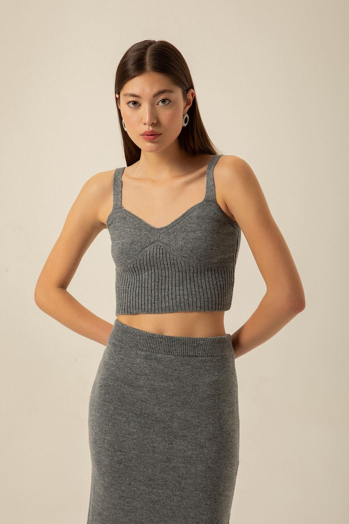 Gögüs Kuplu Gri Triko Büstiyer (41423006_GRI)