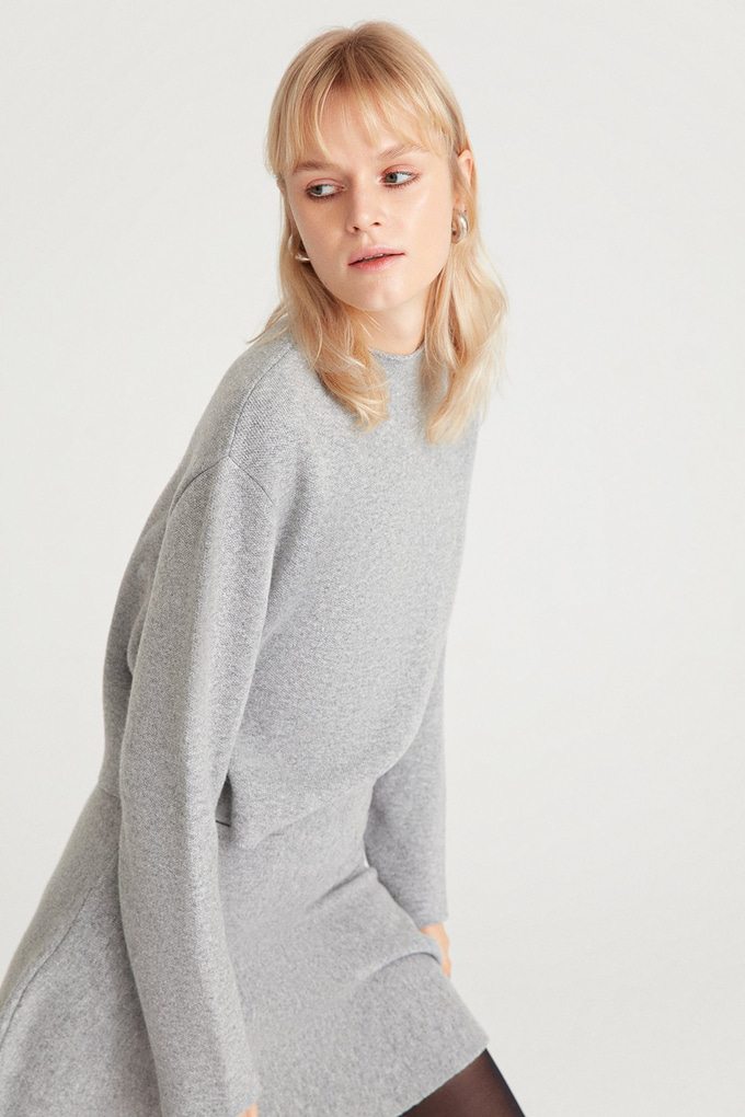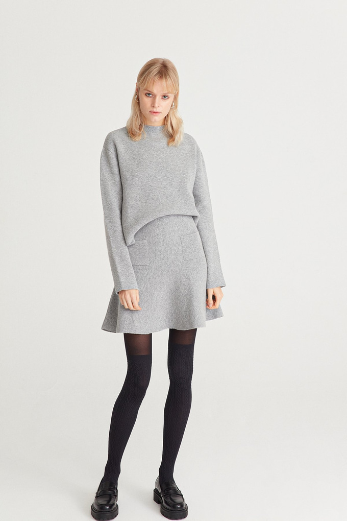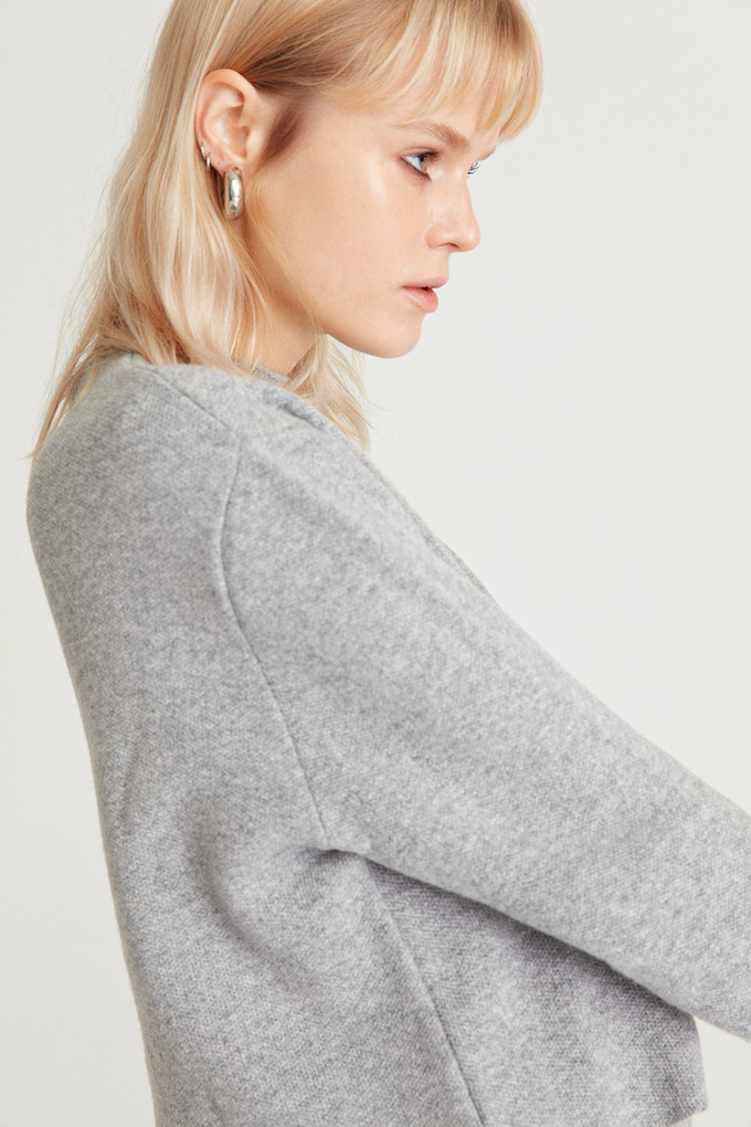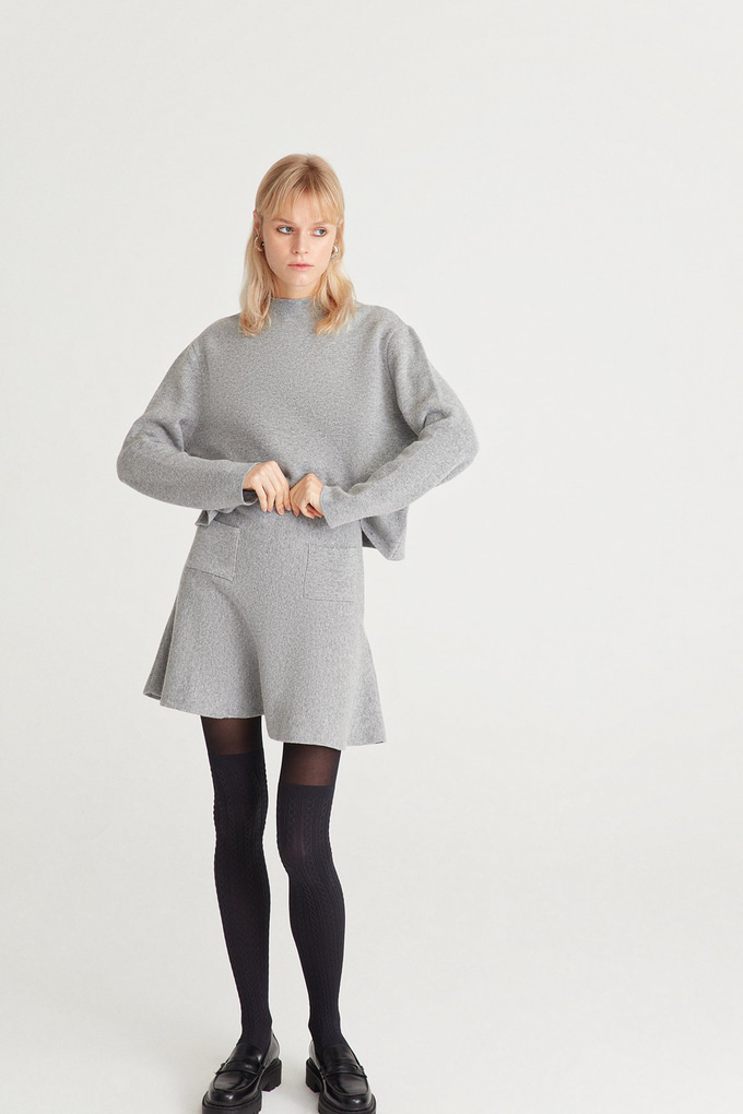 Gri Dik Yaka Yünlü Kazak (20721105_GRI)