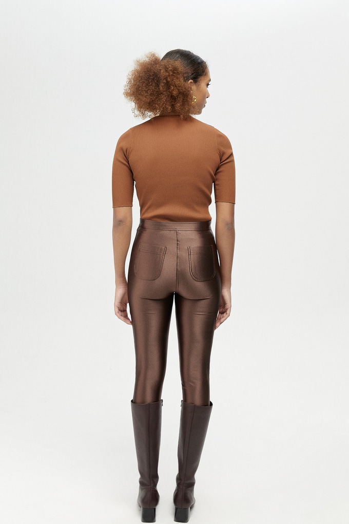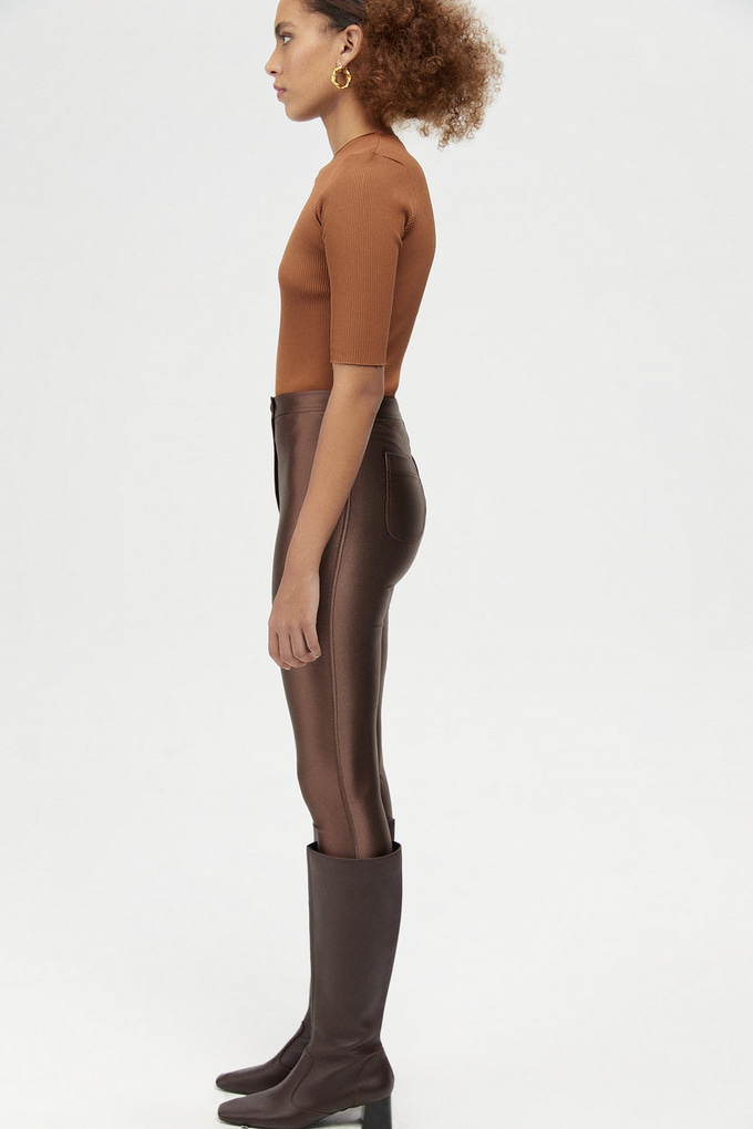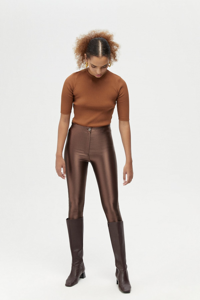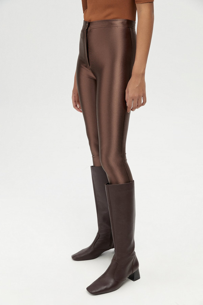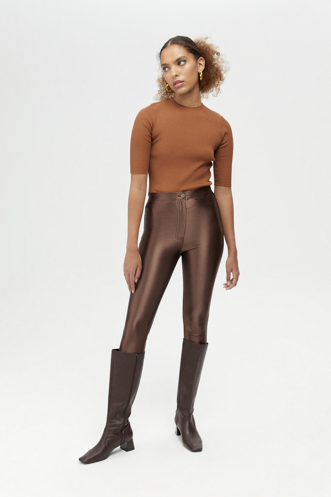 Kahverengi Parlak Tayt Pantolon