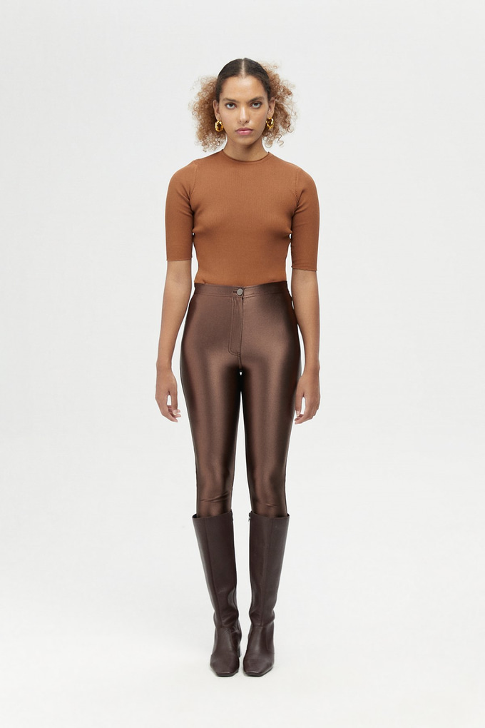 Kahverengi Parlak Tayt Pantolon (40121024_KAHVE)