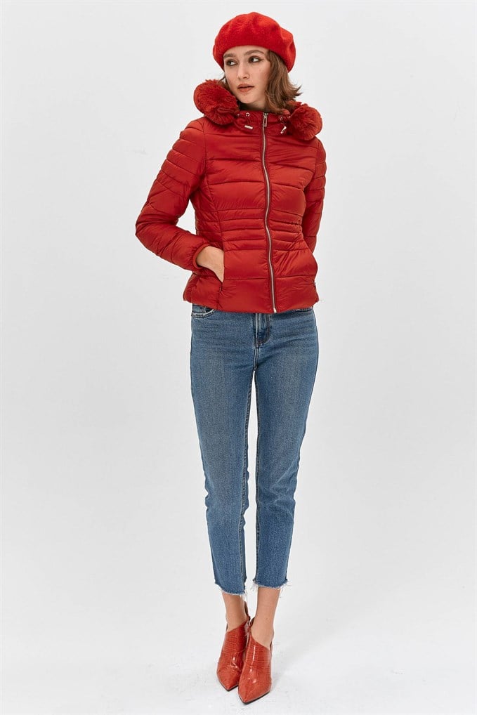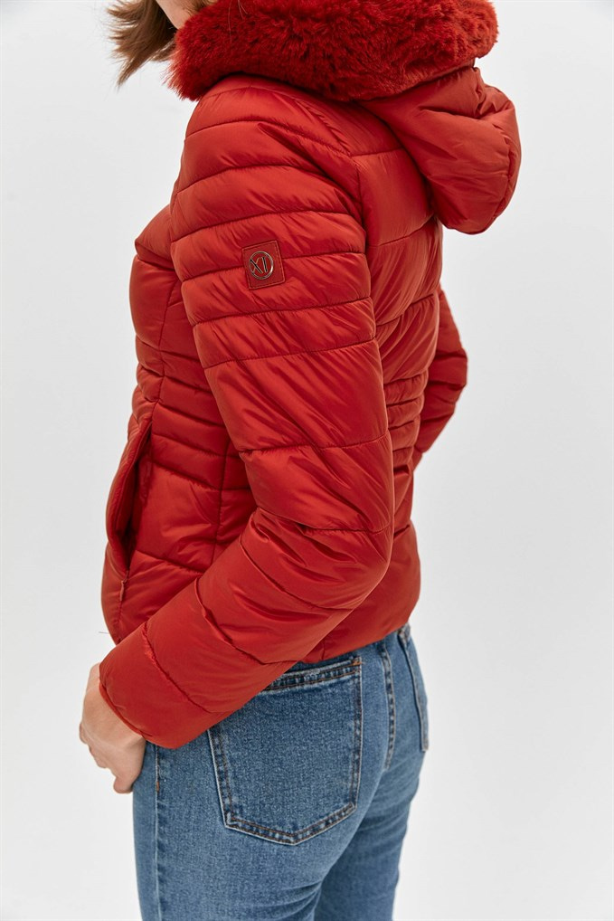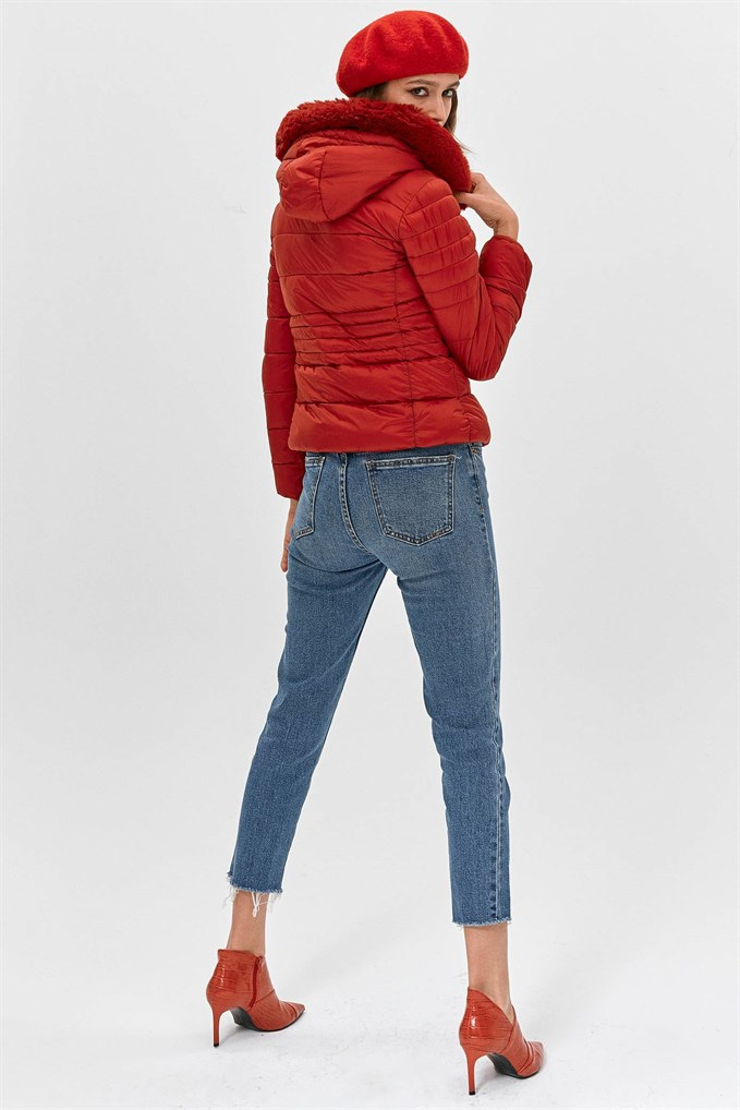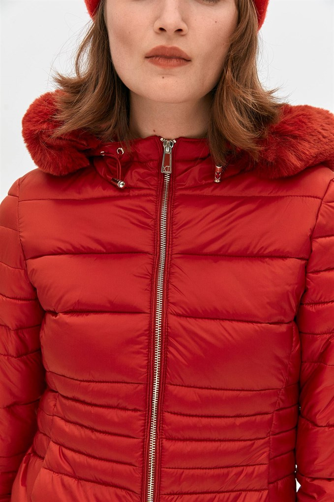 Firered Kapüşonlu Suni Kürklü Şişme Mont (XT19FW711_FIRERED)