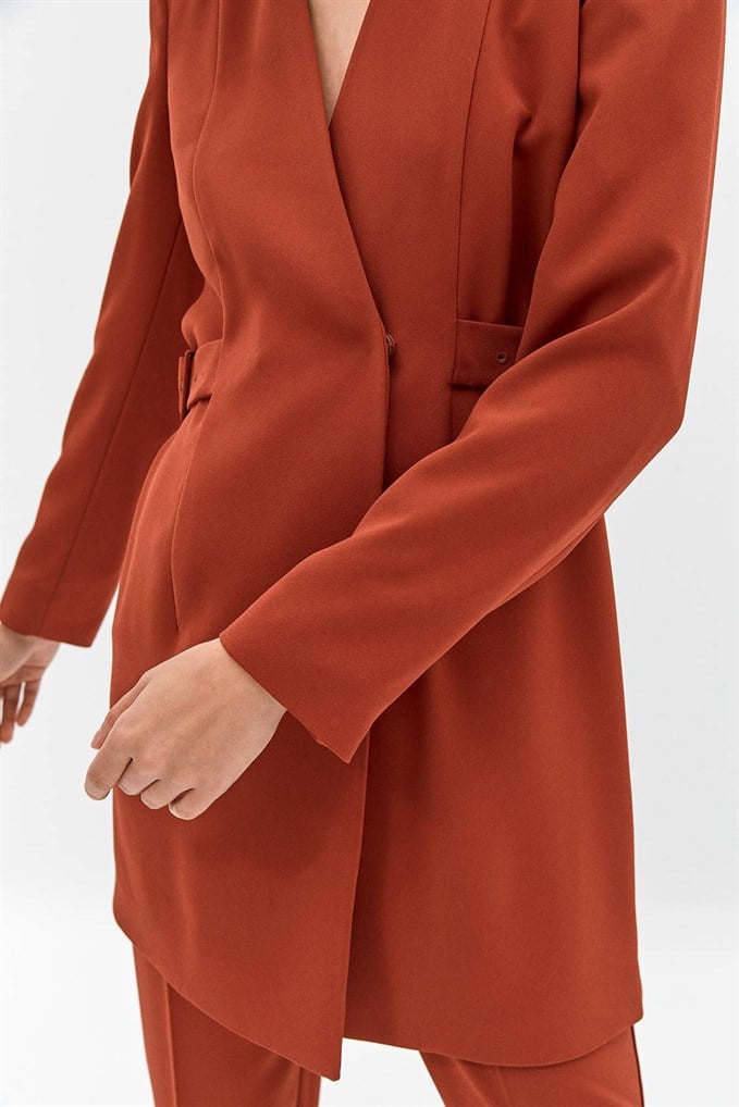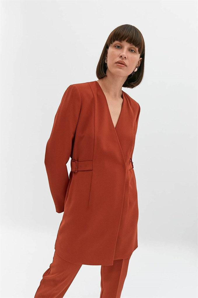 Kiremit Kruvaze Uzun Ceket (20890082_KIREMIT)