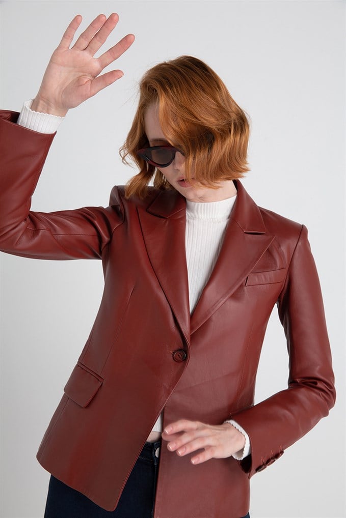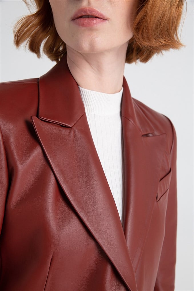 Klasik Blazer Deri Ceket Kiremit (20870007_KIREMIT)
