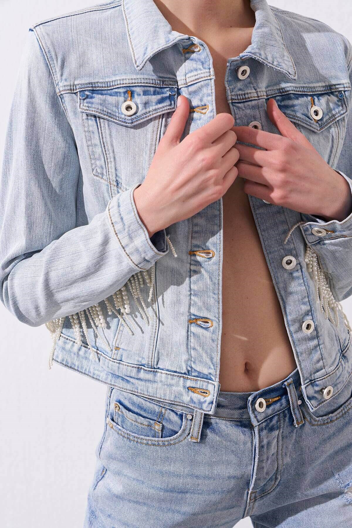 Kolları ve Sırtı İnci Püsküllü Denim Ceket (FR20SPJ141_BLEACHED)