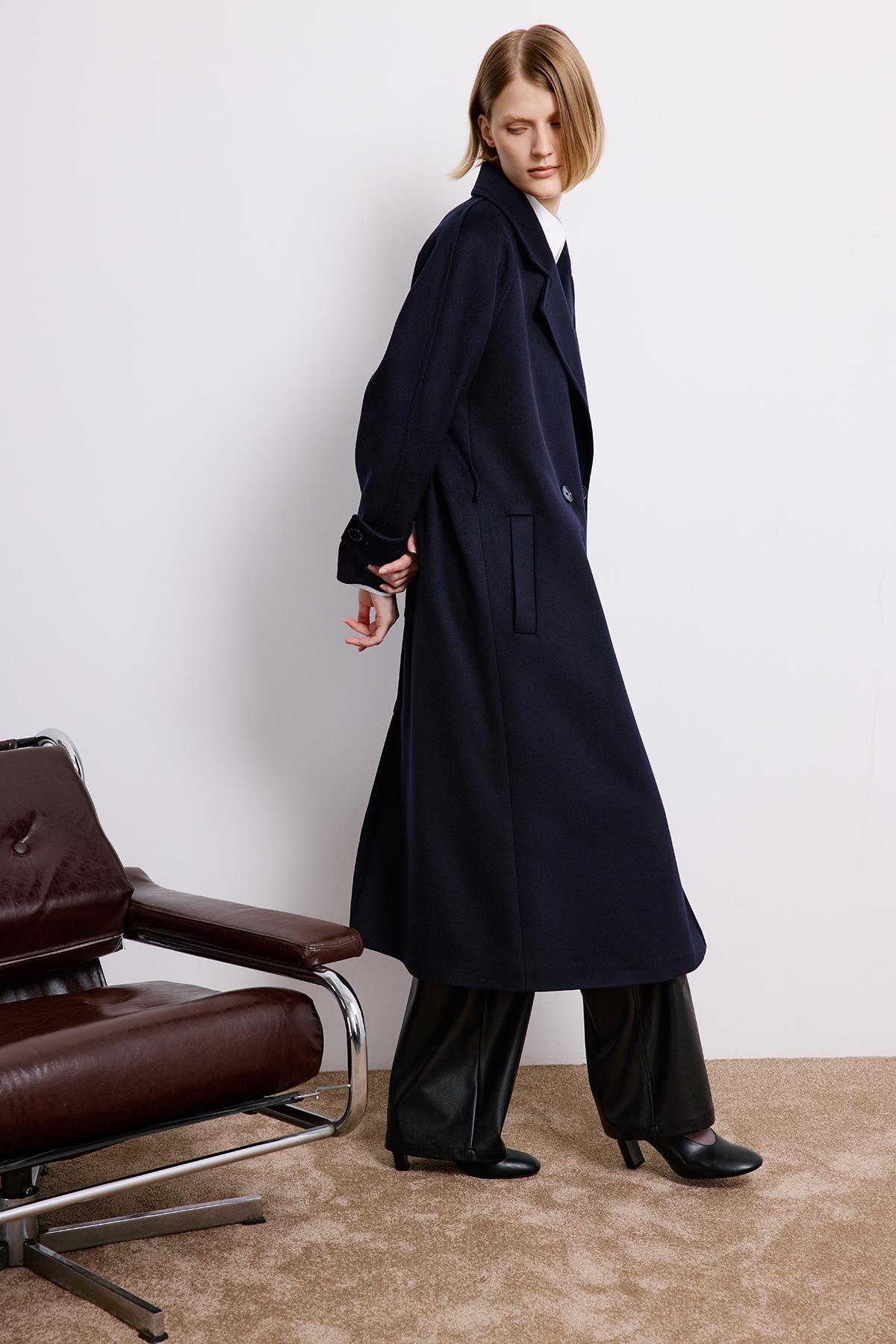 Kruvaze Detaylı Uzun Kollu Lacivert Kaban