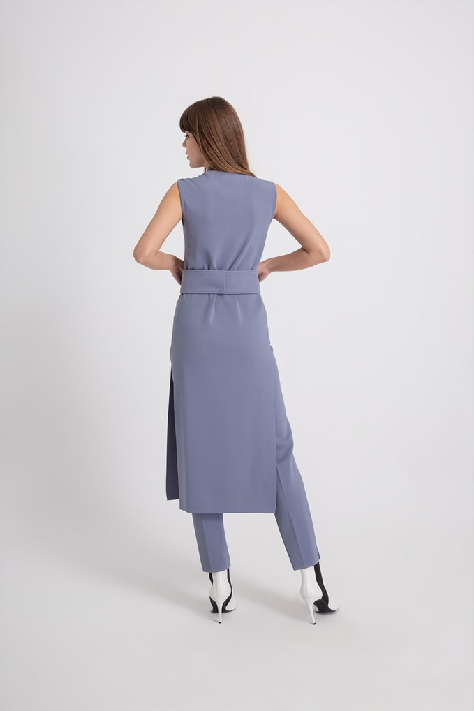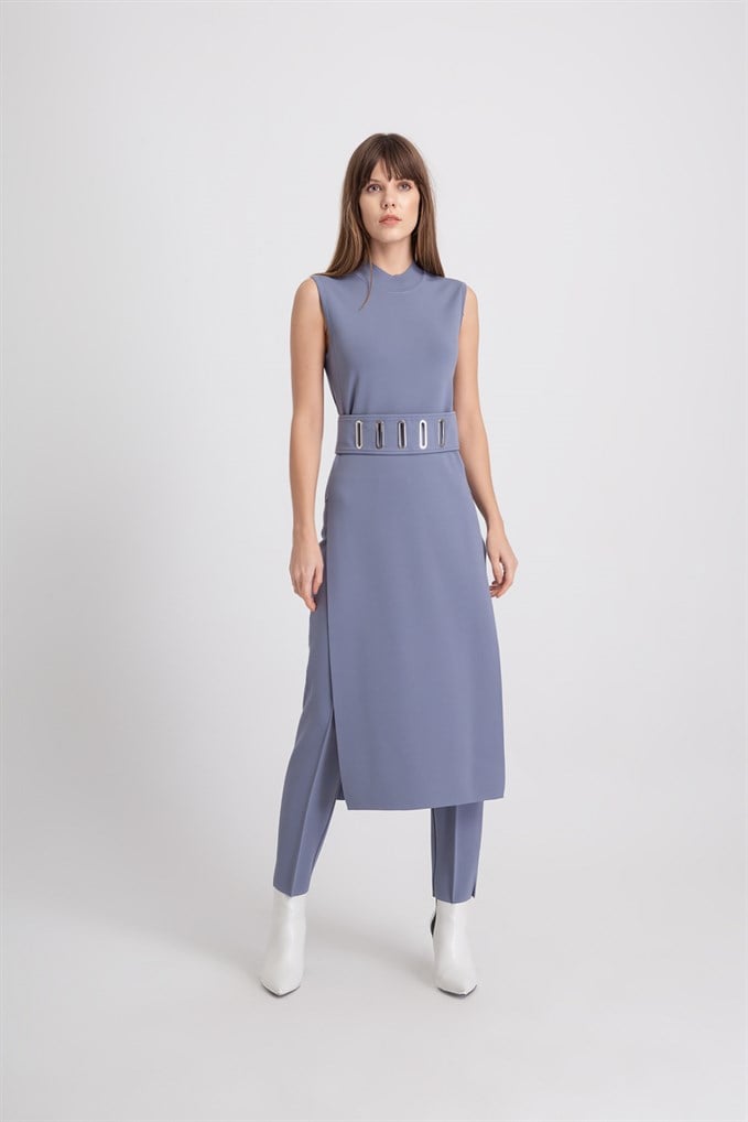 Kuş Gözü Kemerli Triko Tunik A.Indıgo