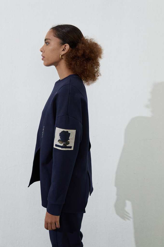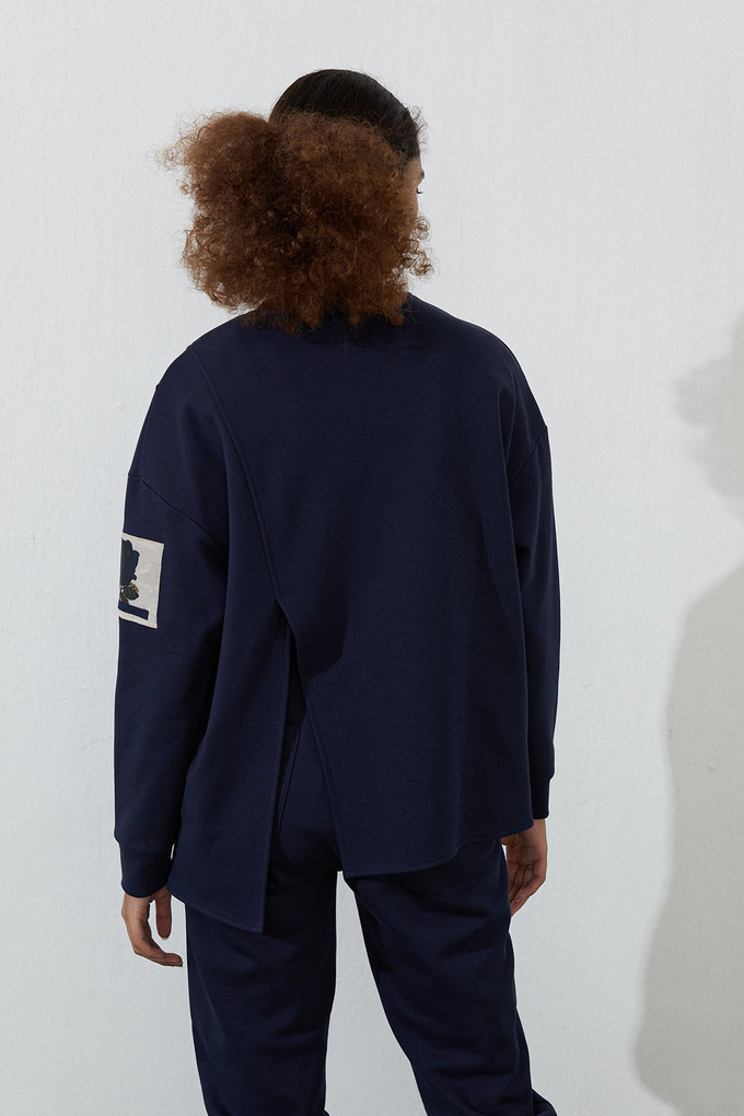 Lacivert Asimetrik Yırtmaçlı Sweatshirt