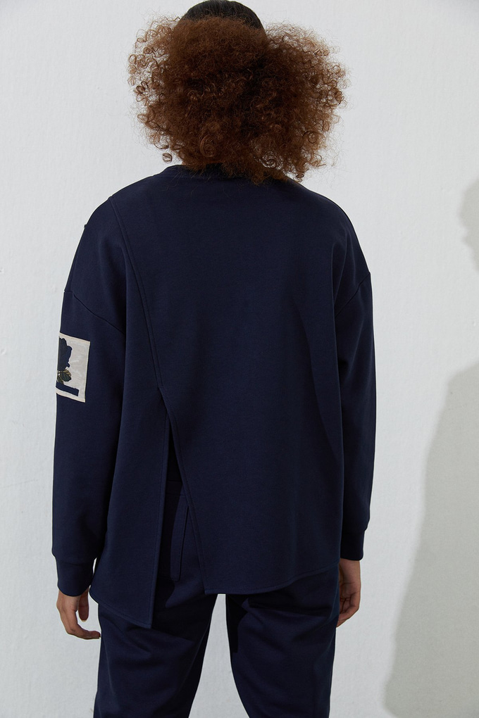 Lacivert Asimetrik Yırtmaçlı Sweatshirt (42121029_LACIVERT)