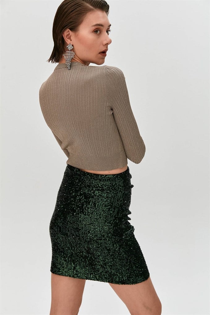Vizon Metalik Yansımalı Crop Triko Kazak (20790106_VIZON)